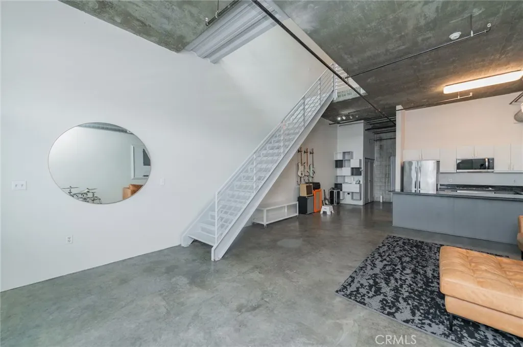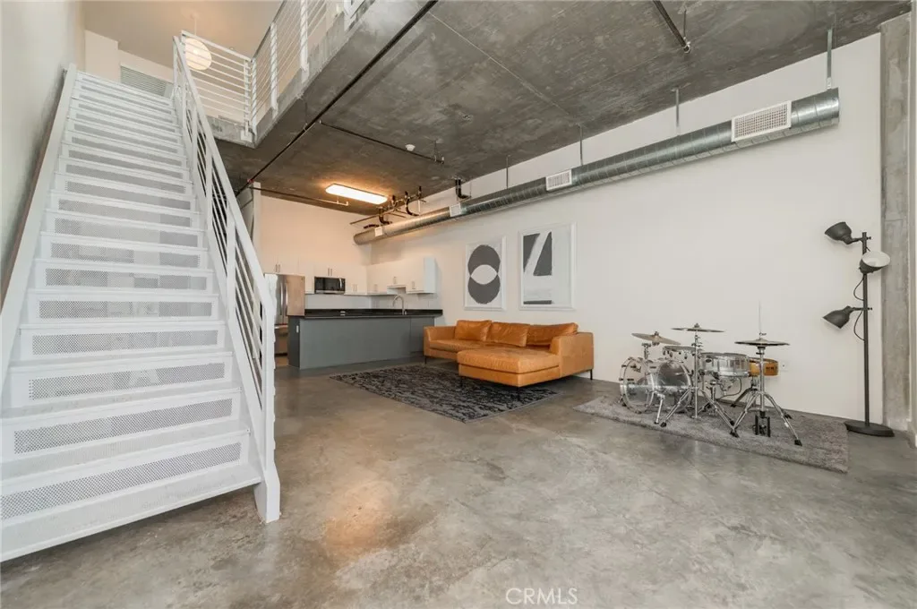 This striking industrial-style two-story condo features dramatic soaring ceilings and large windows, flooding the home with natural light and creating a true urban loft feel rarely found in Orange County. The flexible live-work layout offers direct street access, making it perfect for a home office, creative studio, or simply enjoying the vibrant walkable neighborhood.