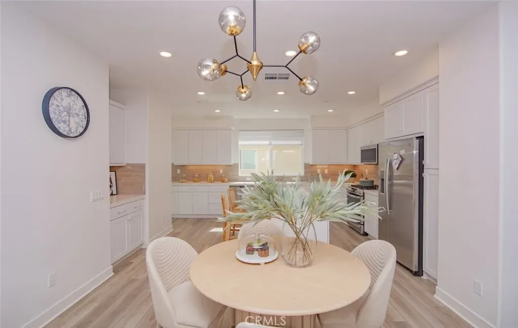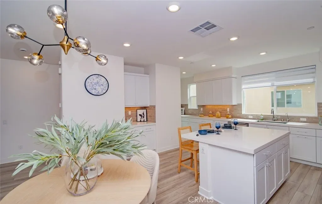 Welcome to this Stunning Three-Story Townhome Nestled in the sought-after Gated Community of Emerald Pointe. Thoughtfully Designed with Modern Living in Mind, this Spacious 3-Bedroom, 2.5-Bathroom Residence offers an Ideal Blend of Style, Function, and Location. Ground level is host to a Versatile Office with Vinyl Flooring that can easily be used as a Media Room or Workspace. 2-Car Garage with Direct Access. Rinnai Tankless Water Heater, and Puragain Water Filtration System for the entire home. The Main Living Level showcases an Open-Concept Kitchen with a Large Island comprise of High-End Quartz Countertops, Soft-Close Cabinetry, Vinyl Flooring, Pantry. Family and Dining Area are perfect for everyday Living and Entertaining, including a Private Outdoor Deck. All Three Bedrooms are conveniently located on the Top Floor, including a Luxurious Owner’s Suite with a Private Bath, Spacious Walk-In Closet, Laundry, Plush Carpet. The Community features a Pool, BBQs, Firepit, and Dog Park, creating a Resort-Style Living right outside your door. Close access to the 5 and 57 freeways and ARTIC transit for rail riders. Nearby, the Platinum Triangle offers premier shopping and dining, Disneyland, and Angel Stadium.