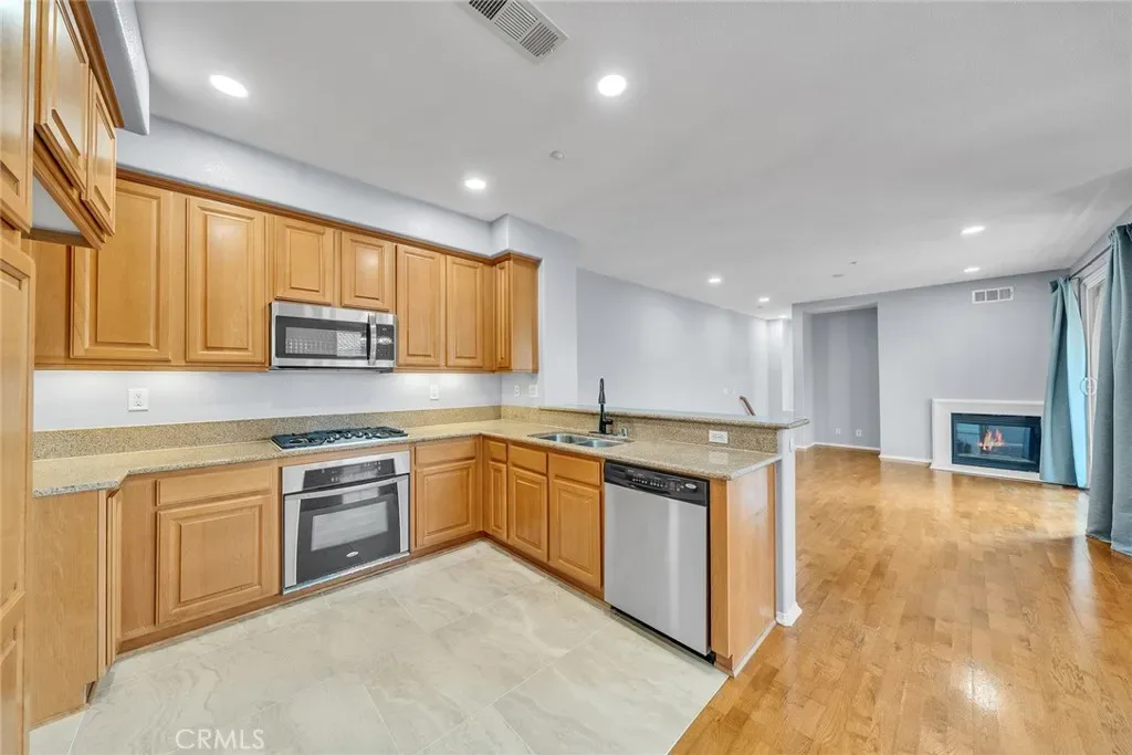 Step into this “Pride of Ownership” gem located in the highly sought-after Magnolia Lane community. Built by KB Home, this rare, upper-level single-story end unit offers the perfect blend of privacy and sophisticated living. Attached on only one side, this home is bathed in natural sunlight and features a seamless open-concept floor plan designed for both relaxation and entertaining. Fully equipped with granite countertops, rich butternut cabinetry, stainless steel appliances, and elegant recessed lighting. Enjoy a warm living room anchored by a cozy fireplace and media niche, featuring gorgeous wood flooring and plush carpeting. An upscale suite boasting dual sinks, a massive walk-in closet, and mirrored accents. Sip your morning coffee on your private, spacious balcony overlooking the serene surroundings. Located in the heart of West Anaheim, you’re just minutes from Disneyland, Knott’s Berry Farm, and premier shopping. With a detached two-car garage, no Mello-Roos, and resort-style community amenities (BBQ, playground, and greenbelts), this is the turnkey opportunity you’ve been waiting for!