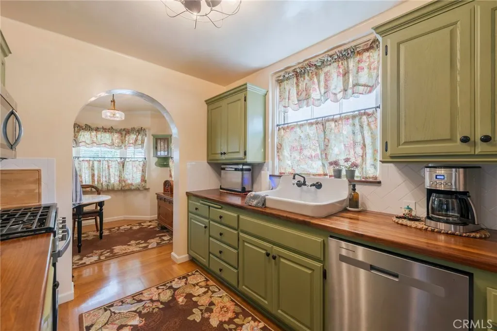 The heart of the home is a sun-drenched, south-facing kitchen that feels like a warm cottage, complete with walnut countertops, a charming farmhouse sink, and an adjacent breakfast nook with built-in cabinetry. The layout includes three generously sized bedrooms and one and a half bathrooms, both of which have been tastefully remodeled while preserving vintage touches like the original square bathtub. Perhaps the most significant financial benefit is the existing Mills Act contract, which allows the new owner to inherit an incredibly low property tax bill of approximately $3,235 per year—a massive savings compared to standard California property tax reassessments.