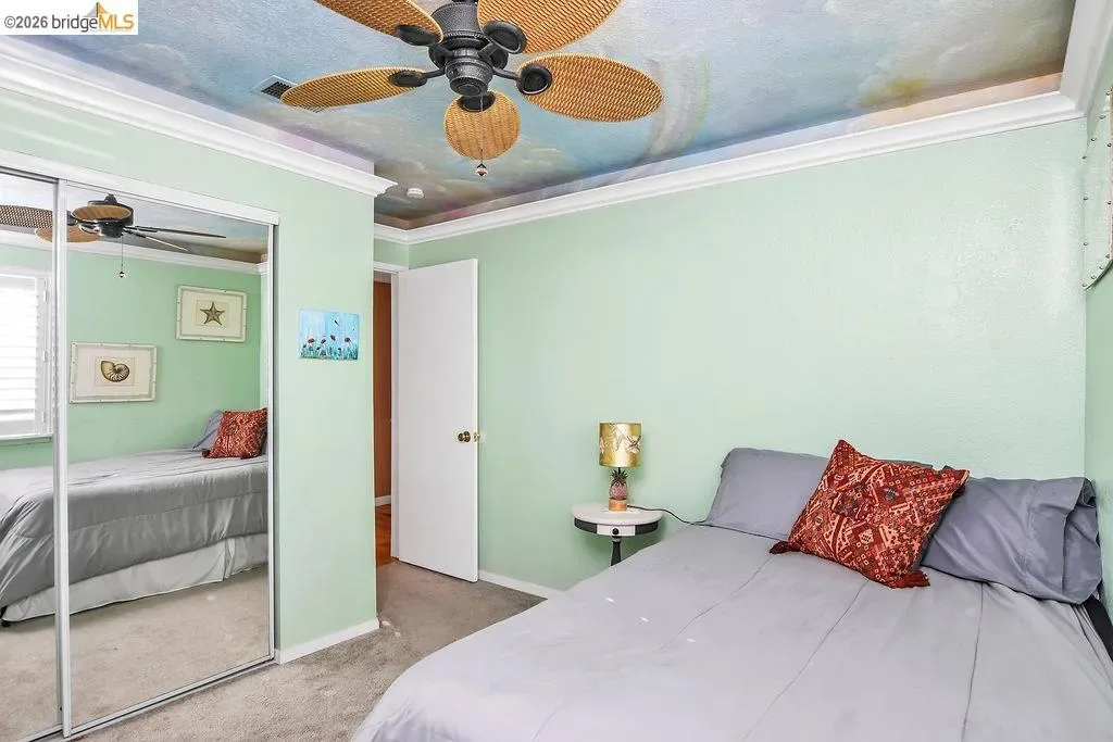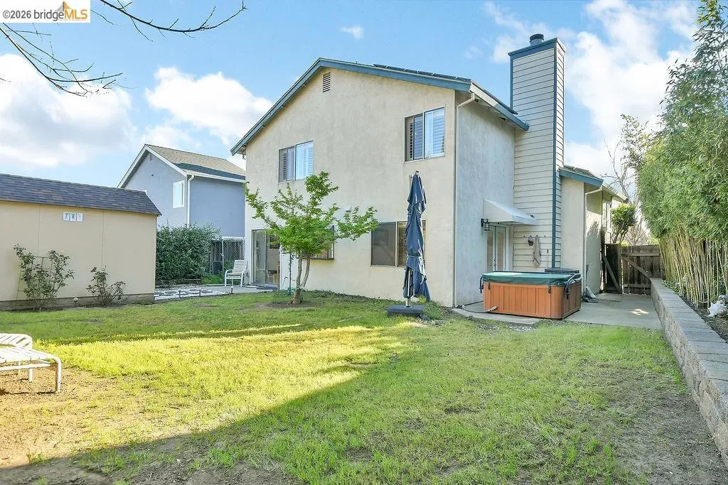 This 4-bedroom, 2.5-bath home shines with natural light and pride of ownership. Large windows create a bright and airy atmosphere throughout the main living spaces. Downstairs features a formal living room, a formal dining room, and a comfortable living space. The bedrooms are privately situated upstairs, where the windows are finished with shutters for added privacy and charm. The expansive backyard offers plenty of room to entertain, garden, or unwind in the above-ground spa. This home also features leased solar with no true-up, helping provide predictable energy costs. Conveniently located close to BART and shopping, the property offers easy access to commuting and nearby amenities.