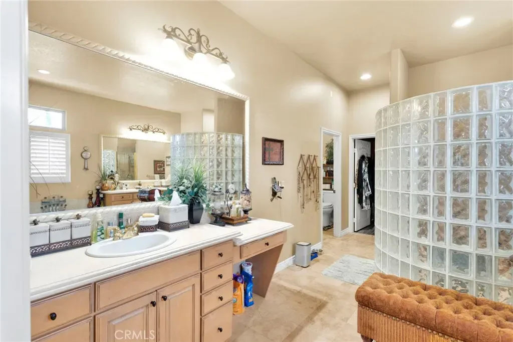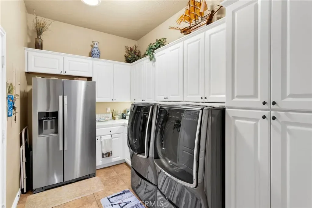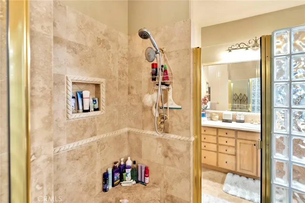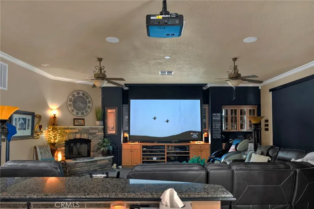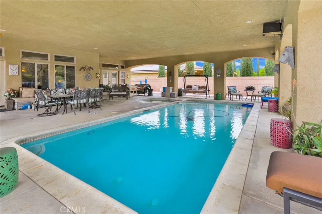 Open and bright 4 bedroom and office/den with 3 full and one half baths. Gated courtyard leads to grand entry and large living/great room off of open kitchen with stainless steel dual ovens, warming drawer, built-in refrigerator, massive 8 burner cooktop stove, trash compacter, microwave, vent hood, double dishwasher and an additional sink area in the large center island. Great formal dining room with butler’s pantry attached includes a wine cooler and lots of storage. Dining room with fireplace opens to front courtyard. Large primary suite with another fireplace has attached bath consisting of jetted tub, huge walk-in shower with dual shower heads and pass through master closet with built-in cabinets. Wood shutters throughout, ceiling fans in all rooms with 10″ ceilings. Crown molding in kitchen, master bedroom, office and living room, newer carpet and luxury vinyl wood flooring in several rooms. Living room has ceiling projector with drop down and motorized 120″ built-in TV with surround sound and components. Living room black-out shades are motorized as well as small entry windows. Off of the primary suite is an office/den with a wall of built-in cabinets and faces the front of the home. East side of home consists of 3 additional bedrooms, one with a private bath and a central bath in the hallway. Indoor laundry room has lots of storage and a hook up and space for an additional refrigerator. Laundry leads to one car garage that opens to another 3 car garage. Expansive driveway provides ample parking for additional vehicles, and RV and boat. Outside, enjoy a private covered pool and spa, lots of concrete patio areas and mature landscaping. Enjoy all the amenities Stonebrook Estates has to offer. Quiet and serene, private and secure! Come see for yourself!!