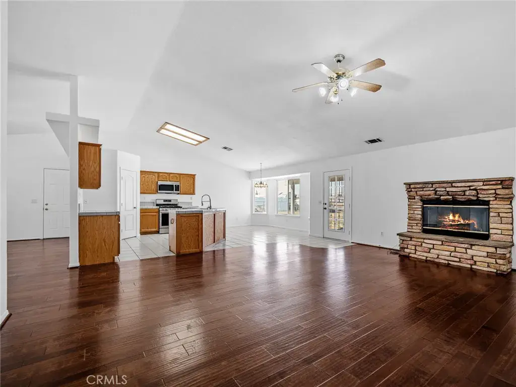 Recently professionally painted inside and out, the home features laminate flooring and tile throughout — no carpeting. The spacious living room offers a cozy fireplace and ceiling fans throughout the home for year-round comfort. The kitchen includes a new stainless steel dishwasher and microwave, making it ready for everyday living and entertaining. The septic system has recently been pumped and serviced, offering added peace of mind for the new owner.