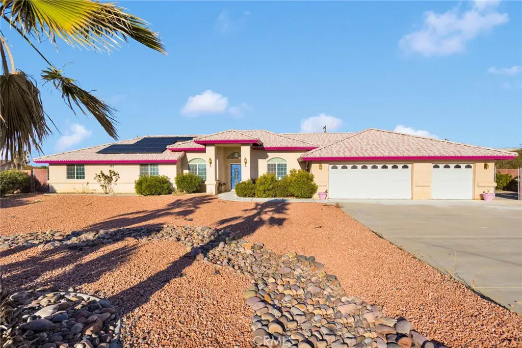 Spacious, well-maintained single-story home offering 4 bedrooms, 2 bathrooms, and nearly 3,000 square feet of comfortable living in Apple Valley. This thoughtfully designed floor plan features expansive living areas, an open kitchen with generous counter space, and abundant natural light throughout. The primary suite includes a large bathroom with dual sinks, soaking tub, and separate shower, while additional bedrooms are well sized and flexible for guests, home office, or multi-use space. The home reflects pride of ownership with a clean, well-kept interior and durable finishes throughout. Step outside to a generously sized backyard highlighted by an oversized covered patio, ideal for outdoor living, entertaining, or relaxing while enjoying scenic mountain views. The property is fully fenced, offering privacy and functionality, and features low-maintenance desert landscaping, wide frontage, and ample parking with a 3-car garage. Conveniently located with room to live, work, and grow, this Apple Valley property offers space, comfort, and long-term potential.