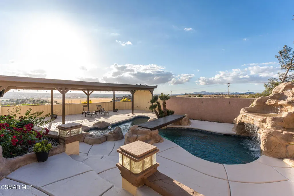 Back on the market. No fault of property. Buyer could not perform. Seller is motivated. Here is your chance to see this beautiful view home. Escape to your own private oasis in this beautifully renovated property. Gorgeous, gated drive up with expansive concrete driveway and thoughtful landscaped grounds invite you to a stunning, updated 4 bedroom, 3 bath home with in-law quarters or 5th bedroom option. With breathtaking, unobstructed views of the city lights and snow-capped mountains from an elevated hillside location and plenty of outdoor space, you’ll feel like you’re on vacation every day. Wake up in each morning with serene mountain views. Allow your gatherings to overflow onto the refinished deck or soak in the spa at night surrounded by city lights and a tranquil waterfall spilling into the newly refurbished pebble tech pool.Newly renovated, this home offers unique bonus flex space and adaptable rooms, high ceilings, and rich natural light. The oversized primary bedroom has ample space with a sitting area and room for a walk-in closet. There is a separate room used as an office, and another room in the garage used as a music room. The home also comes with a 6 car garage which will give you plenty of space to keep your vehicles and toys equipped with EV charger. This location is one you just can’t recreate with riding trails waiting just outside your door! Meticulous attention to detail is presented in the kitchen with new quartz countertops, customized backsplash, freshly finished cabinets, and brand-name appliances including two upgraded Samsung refrigerators, and a large pantry area with separate sink and wash room. State-of-the-art security system with 16 cameras and solar energy plus smart home features that offer quintessential, high-desert indoor/outdoor living. This home is truly one-of-a-kind. All furnishings are negotiable.