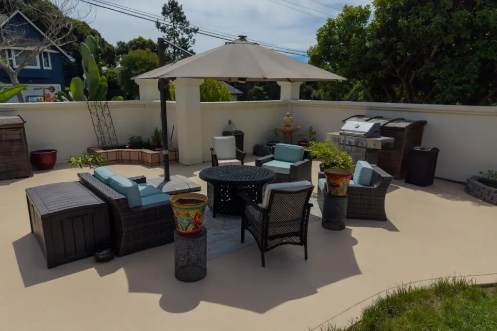 Tucked away on a quiet cul-de-sac in desirable Rolling Green Estates, this enchanting single-level California Mediterranean retreat delivers rare privacy and indoor-outdoor flow that feels worlds away – yet minutes to everything. Behind a stylish privacy wall, a generous sun-drenched courtyard and wraparound deck become an extension of the home itself: an inviting alfresco sanctuary for morning coffee, family play, or evening gatherings. Inside, the open, airy layout shines with thoughtful updates: a remodeled kitchen featuring granite counters, tile backsplash, new sink and oven; an updated bath with granite and LVP flooring; plus hardwood floors, plantation shutters, fresh paint, and carpet. 2-car garage, bonus shed and extra driveway for boat or trailer. Nearby Aptos Village, New Leaf Market, and Nisene Marks State Park for hiking and biking adventures in the redwoods. Homes blending this level of privacy, character, single-level ease, and unbeatable location are rarely available.