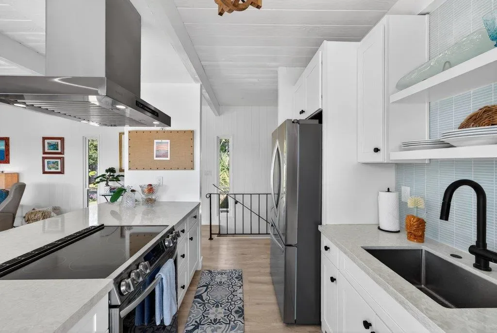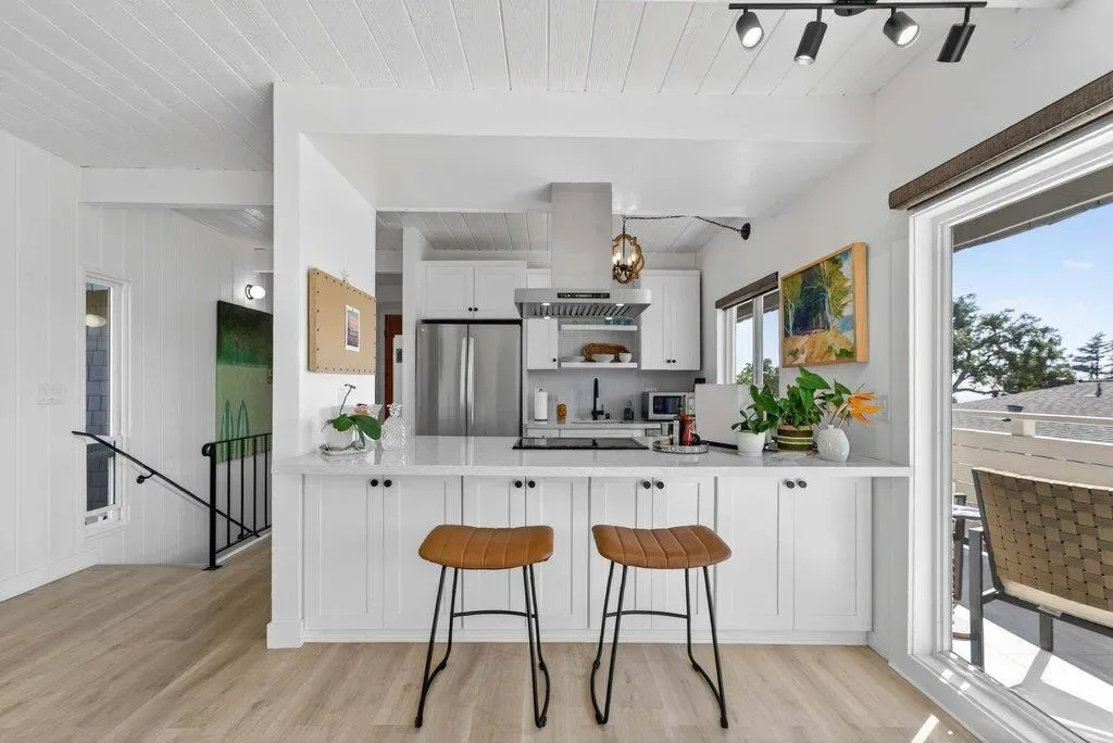 Ocean views, thoughtful upgrades, and space to entertain, this 4-bedroom, 2-bath Rio Del Mar home checks all the boxes! Extensively improved by the current owners, the property has been transformed into a true entertainer’s retreat featuring updated landscaping, aesthetic use of synthetic turf and new concrete retaining walls giving the yard a polished, upscale feel. They also added new fencing surrounding most of the property for added privacy. The ample parking which includes a 2-car garage plus space for up to 8 additional vehicles, makes hosting effortless. Inside the home shines with a 2023 kitchen refresh including new appliances, cabinetry, and countertops. Wood shutters throughout with motorized blinds in the living room add both style and functionality. The upstairs deck was recently remodeled with porcelain tile and privacy rail. Just moments from Rio Del Mar Beach, you can easily enjoy morning walks, sunset runs, or a quick trip to the sand anytime!
