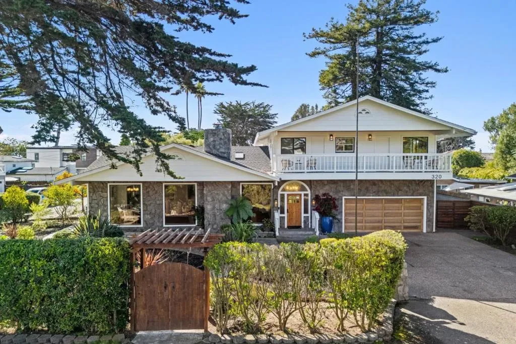 Just above Rio Del Mar Beach, 320 Cliff Drive offers a rare blend of coastal living & generous space with the convenience of a private interior elevator in the heart of Aptos. Spanning 3,356 sq ft across two well-designed levels, the home balances flexibility, comfort & ease. The main living area is bright & open with floor-to-ceiling windows overlooking a landscaped garden for a peaceful sense of privacy. The kitchen anchors the home with double ovens, three sinks, a walk-in pantry & a serving pantry with wine fridge, 2nd dishwasher & ample cabinetry – ideal for everyday living or entertaining. Enjoy casual meals in the breakfast nook or at the island with a formal dining room for gatherings. Downstairs includes a bedroom, an office (previously used as a 4th bedroom), a full bath & a sitting room with its own bathroom & private entrance – great for guests or flexible living. Upstairs, the primary suite & second bedroom sit beside a family room with wet bar opening to a large deck for sunsets, ocean glimpses & coastal breezes. With elevator access between levels, abundant storage & multiple covered decks & patios, this home offers understated sophistication moments from the beach & all that Aptos has to offer.