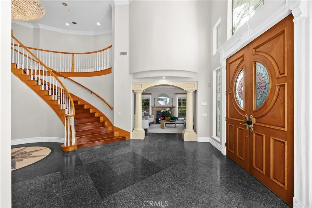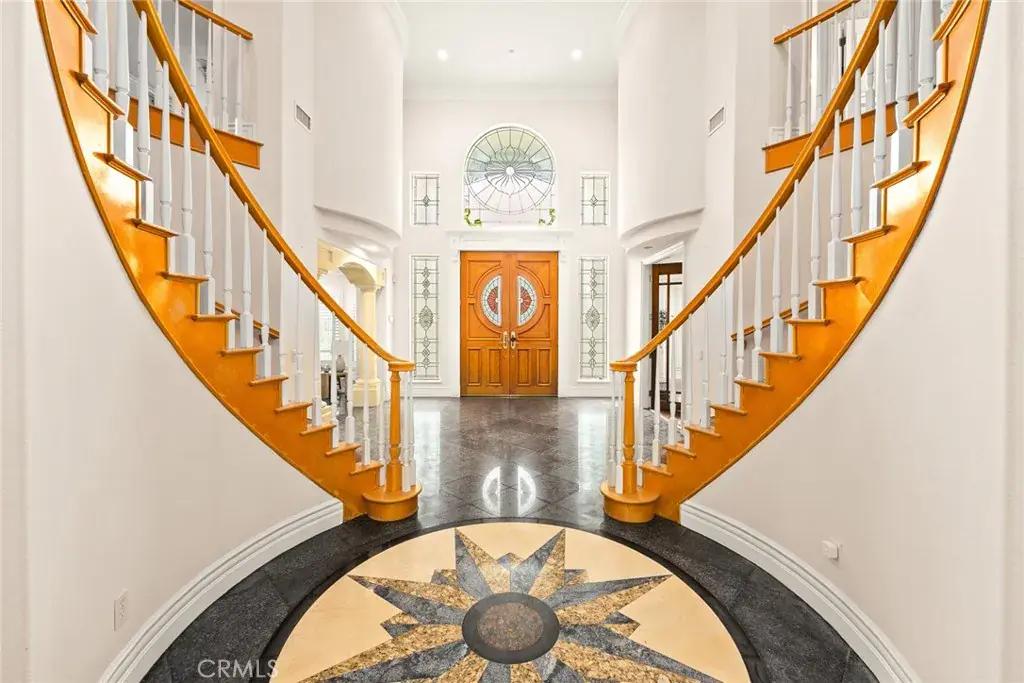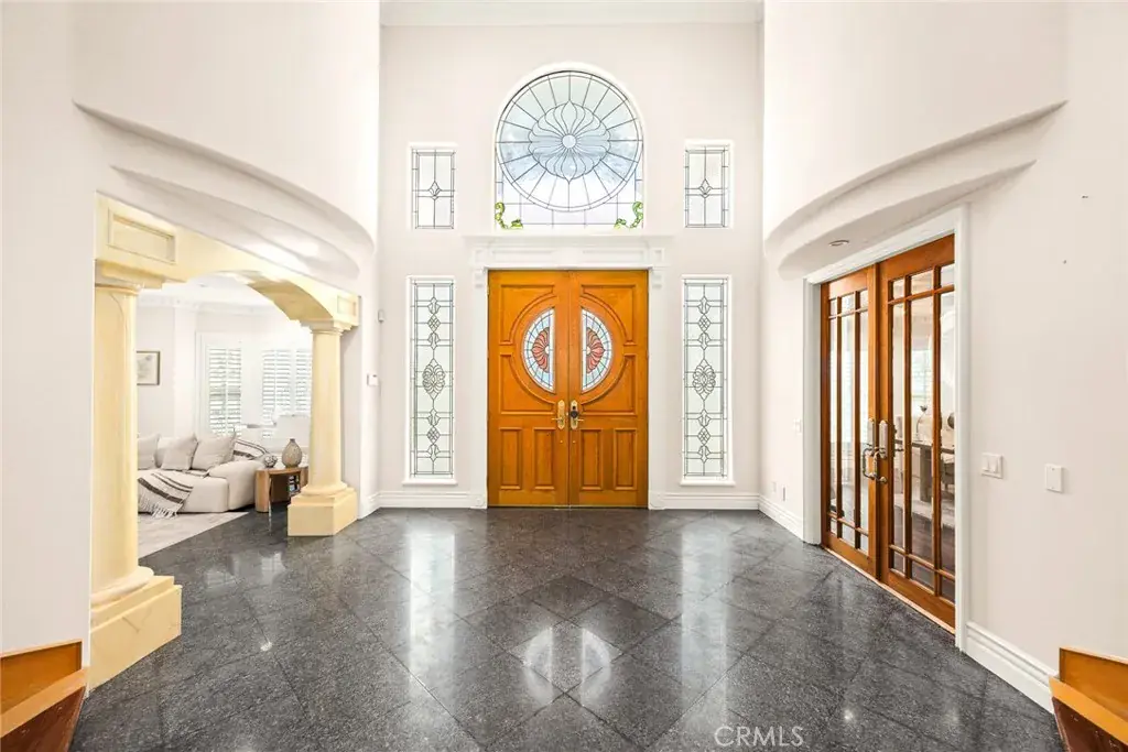 This Gorgeous & Elegant 2 story custom estate located on Beautiful and Quiet neighborhood with distinguished Arcadia School District. It features private security gated, stately 2 column studded entrance leads to a grand foyer under cathedral ceiling featuring a magnificent crystal chandelier. Downstairs of the main house: wood-paneled library; marble-floored living room; large newly remodeled built-in shelf for ample storage spaces . Family room with a newly build wet bar connected to the fully remodeled gourmet kitchen behind dining room and a fully remodeled separate wok kitchen. 2 bedroom suites, plus a 1/2 bath as the powder room for guest. Upstairs: 2 hard wood staircases connected downstairs; 4 bedroom-suites with common area for study or recreation; Jacuzzi tub, steam room, 3 walk-in closets and retreat area inside the master suite against with beautiful view of San Gabriel mountains. Palm trees surround the detached guest house(1500 sqft) with permit for entertainment , Sparkling pool and water fountain. Refinements such as marble, stone, custom-made cabinetry, drapes and built-ins are evident throughout with many stained-glass windows. Front yard features circular driveway and garden with year-round roses and fruit trees. 3-car attached garage plus plenty of car parking space. Walking distance to schools, super-market and multi-cultural eateries. A Great opportunity to own this Luxurious Home !!!