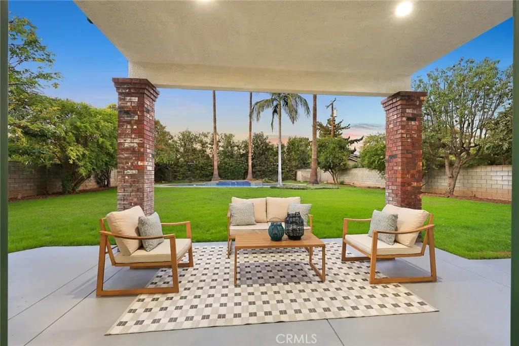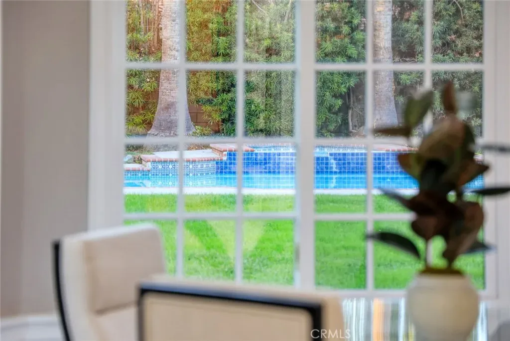 STEP OUTSIDE THROUGH GRAND FRENCH DOORS TO A PROFESSIONALLY LANDSCAPED BACKYARD OASIS FEATURING A SPARKLING POOL, MATURE GREENERY, AND AMPLE SPACE FOR ENTERTAINING GUESTS.