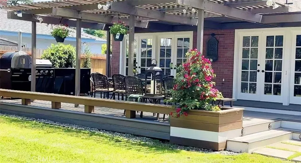 Stunning fully remodeled single-story home in a quiet Arcadia cul-de-sac! Custom steel door. Featuring all-new Thermador appliances, a chef-inspired kitchen with oversized island and sleek downdraft stove, and an open-concept layout with a designer fireplace and abundant natural light. Brand-new bathrooms with frameless glass showers and high-end fixtures. French doors from the living room and primary suite lead to a beautifully landscaped backyard with mature trees, a 600+ sqft composite deck, custom pergola, and seating for 30+. Two backyard sheds serve as workshops or potential ADU space. Extended driveway offers parking for 6. Located in top 1% of public school districts. One of a kind turnkey property. Prime Arcadia location!