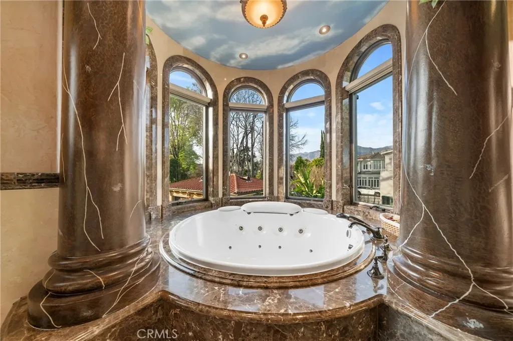 Nestled in one of Arcadia’s most prestigious neighborhoods, this magnificent south-facing Mediterranean-style estate offers unparalleled luxury and convenience. Set on a quiet street, yet just minutes from Westfield Mall, Santa Anita Racetrack, the Arboretum, Huntington Library, and Caltech, this home provides the perfect balance of privacy and proximity to key amenities.Upon entering, a grand dual marble staircase and exquisite Venetian plaster walls set the stage for timeless elegance. The home features three fireplaces, a spacious gym with a wet bar and film projector, and a breathtaking saltwater fish tank as its centerpiece. Outside, a tranquil Koi pond and resort-style swimming pool, thoughtfully designed with optimal Feng Shui, offer a serene escape.The expansive family room includes a built-in entertainment system and a stunning double-sided fireplace, ideal for hosting gatherings. The gourmet kitchen is equipped with a separate wok kitchen and walk-in pantry, catering to all culinary needs with ease. The backyard retreat is an entertainer’s dream, featuring a built-in BBQ, swim-up bar, and premium surround sound system, making it perfect for both entertaining and relaxation. This estate includes five luxurious suites (including one on the main level), two libraries (one inside the master suite), and two laundry rooms (one upstairs and one downstairs). Climate control is effortless with five zoned air conditioning units, allowing for personalized comfort in every room. The five-car garage offers secure, coded access for ultimate convenience. Broker/Agent: Please note this property is sold in “As-Is” condition. Broker and Seller do not guarantee the accuracy of square footage or property lines. Buyer is advised to conduct their own due diligence with appropriate professionals.