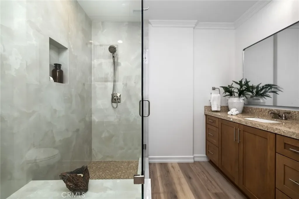 Gracefully set on a flat, rectangular 19,115 square foot lot in a highly desirable “West of Santa Anita” pocket of Arcadia, this extensively remodeled single-story residence offers a refined blend of modern upgrades, comfort, and everyday functionality. Featuring 3 bedrooms and 2 bathrooms, the home has been thoughtfully renovated throughout, including new PEX plumbing, all-new electrical wiring and panel, a new roof, all new windows, a completely redesigned kitchen, beautifully updated bathrooms, new flooring throughout, and a stunning new fireplace in the expansive family room. A charming covered front porch sets a warm and welcoming tone, leading into a spacious living room anchored by a classic fireplace and complemented by a ceiling fan. A separate formal dining room provides an elegant setting for gatherings, while the impressive family room, highlighted by high ceilings and a newly constructed fireplace, flows seamlessly into the kitchen, creating an open and inviting environment, ideal for entertaining. The remodeled kitchen is both stylish and highly functional, featuring bar seating at the main island, an additional side island, and a cozy breakfast nook. The primary suite is privately positioned and offers direct access to the backyard through a sliding glass door, along with an ensuite bathroom and generously sized closets. The grounds are truly exceptional, an expansive, park-like setting that feels both serene and private. The beautifully maintained lot showcases lush greenery and multiple mature fruit trees, creating a setting that is as functional as it is picturesque. The generous size of the lot offers tremendous potential, including ample space to build an ADU or expand the existing property. Completing the property is a rare and highly versatile detached garage totaling approximately 1,095 square feet. With its substantial size and layout, it presents an outstanding opportunity for conversion into an ADU, while still leaving room to add an additional garage if desired, an increasingly valuable option for extended living, rental income, or multigenerational use. Ideally located just minutes from popular dining and shopping along Baldwin Avenue, residents enjoy convenient access to a vibrant collection of restaurants, as well as nearby medical offices. A truly turnkey property offering quality craftsmanship, expansive grounds, incredible flexibility, and an unbeatable location in one of Arcadia’s most sought-after neighborhoods.