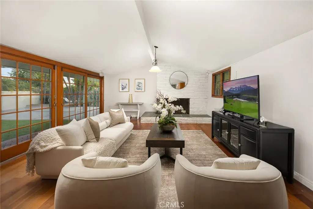 Charming single-level California Ranch–style home in the highly sought-after Arcadia Unified School District, nestled in the coveted Colorado Oaks neighborhood along the desirable “College Streets.” Ideally located across from the Arboretum, where peacocks are often seen, this home offers a serene, nature-filled setting in a quiet, family-friendly area. Situated on an oversized, flat 14,585 sq. ft. lot, the property offers approximately 2,350 sq. ft. of living space with 4 spacious bedrooms and 2 bathrooms in the main house, providing exceptional indoor/outdoor living and excellent potential for future expansion. Enter through double front doors into a bright formal living room featuring a fireplace and picturesque backyard views, adjacent to a spacious dining room—perfect for entertaining. The home showcases gleaming cherry-toned wood flooring, recessed lighting, custom storage, and double-pane windows. The family room offers tranquil backyard views and an additional sitting area near the fireplace, with glass doors opening to lush private gardens. The kitchen includes a center island, breakfast bar, ample cabinetry, and generous storage, conveniently located next to the family room with backyard views. A separate laundry area adds everyday convenience.The primary bedroom features sliding doors to the courtyard and a remodeled en-suite bathroom, while the hallway bathroom includes dual sinks. Outdoor highlights include spacious, level front and back yards, a fenced sparkling pool, and abundant space for entertaining, relaxing, or future additions. A gated driveway provides privacy and security, and a bonus exterior room offers flexible use as a changing room, storage, or utility space. The detached pool house with bathroom offers significant potential for conversion into an ADU, home office, studio, or guest retreat. Additional features include a storage room and a 2-car carport.