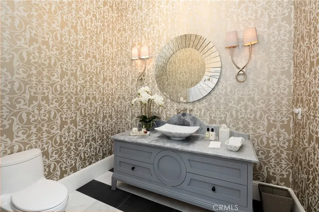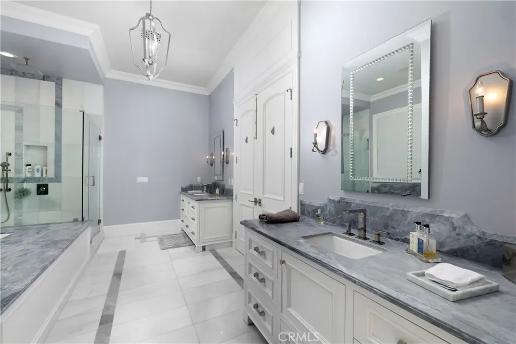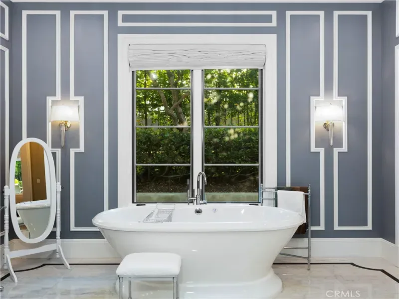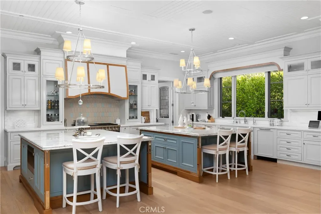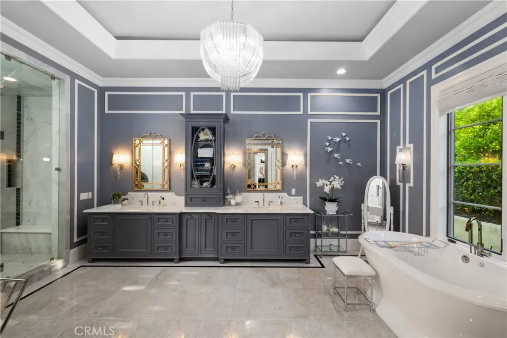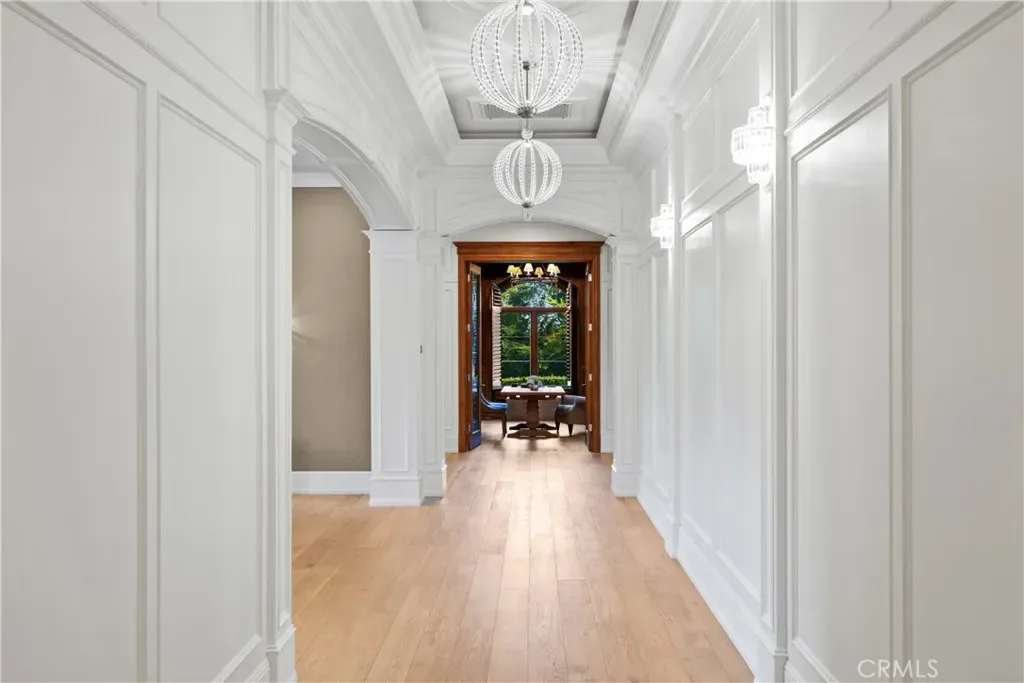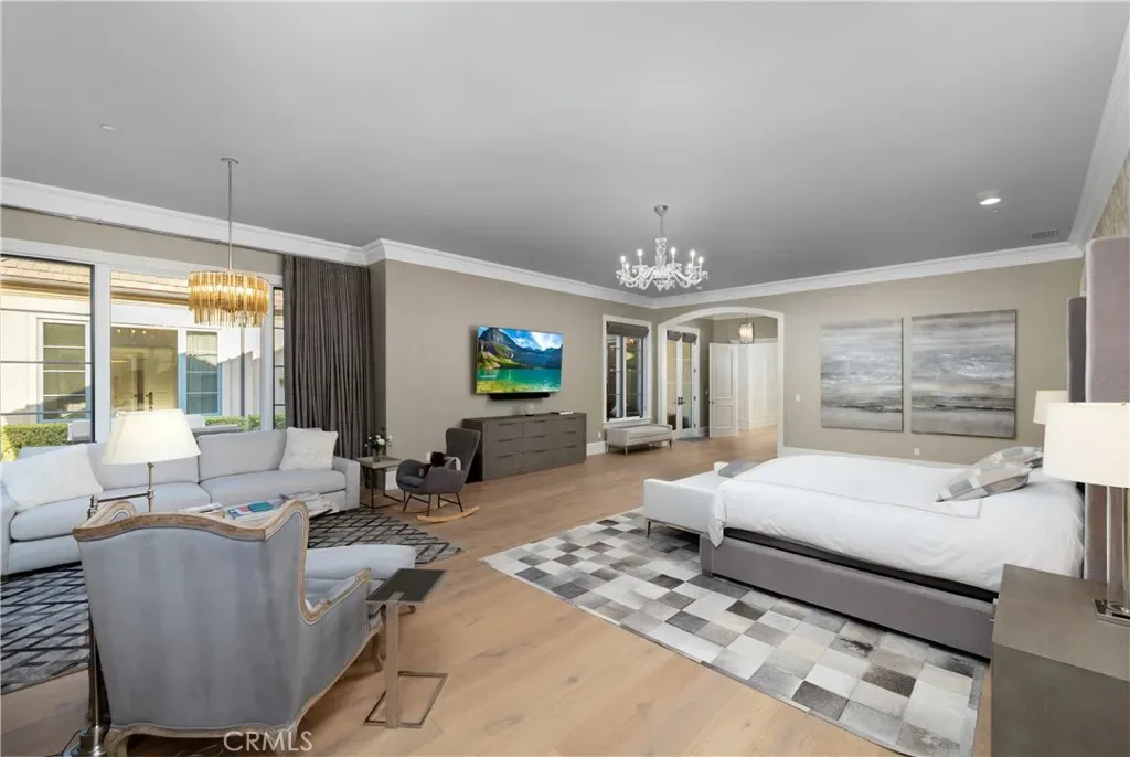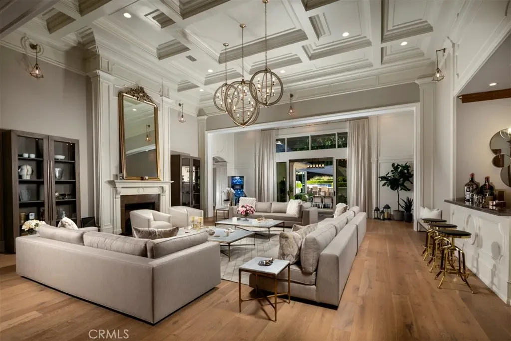 A Rare 10,422-Square-Foot French Estate in Prestigious Santa Anita Oaks, Set within Arcadia’s esteemed Upper Rancho Area of Arcadia, this extraordinary French-inspired estate presents over 10,000 square feet of rare single-level living on nearly an acre of beautifully landscaped grounds. Designed by the reputable Robert Tong and built by Mur-Sol Construction, this residence embodies timeless elegance, modern luxury, and superior craftsmanship. Behind its stately façade behind multiple large hedges and gated circular driveway, interiors unfold with grand proportions, soaring ceilings, and exquisite detailing throughout. The magnificent family room, crowned by a Cathedral High coffered ceiling and illuminated by a Gold Czech crystal chandelier, serves as the dramatic centerpiece of the home. Formal living and dining rooms offer refined settings for entertaining, while a richly appointed paneled study, an expansive home theater, and a private fitness room with sauna provide a wealth of lifestyle amenities. Throughout the home, custom designer draperies add sophistication and warmth to every space. At the heart of the estate, the gourmet kitchen impresses with dual marble-topped islands, professional-grade appliances, and bespoke cabinetry, paired with a fully equipped secondary wok kitchen for seamless entertaining. Six ensuite bedrooms, including a serene and extremely large primary suite with a spa-inspired bath of imported marble and European finishes, provide privacy and comfort for family and guests. The estate’s outdoor setting is equally remarkable, designed as a private resort retreat. Mature oak trees and lush landscaping frame a vast grassy lawn, an entertainer’s saltwater pool and spa, and an elegant stone terrace with outdoor fireplace. A circular driveway and a four-car attached garage ensure both prestige and convenience, with parking capacity for more than ten additional cars on the grounds. Enhancing the property’s value and efficiency are paid-off solar panels, offering sustainable living without compromise. Distinguished not only by its scale but also by its rare single-story design, this residence offers a lifestyle of enduring elegance, comfort, and exclusivity—all just moments from Arcadia’s award-winning schools, parks, dining, and cultural destinations.