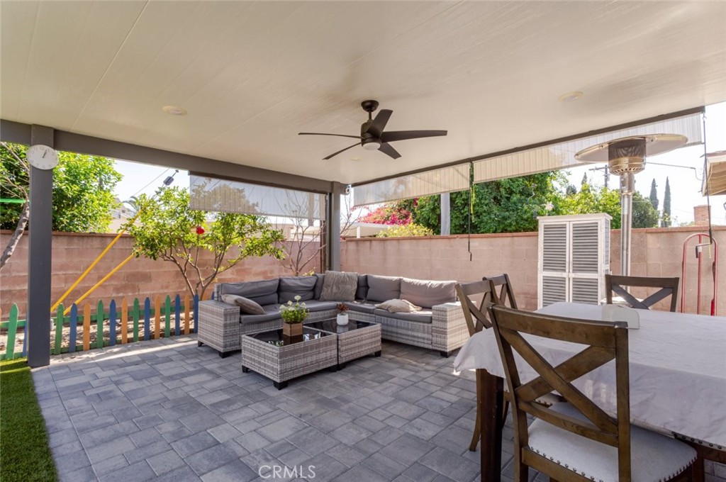 The outdoor space truly stands out, showcasing a spacious backyard designed for enjoyment and versatility. A covered patio with ceiling fans provides a comfortable setting for relaxing or hosting, while the expansive yard offers room for recreation, gatherings, and more. The well-maintained grounds create a private and inviting environment perfect for making the most of outdoor living.