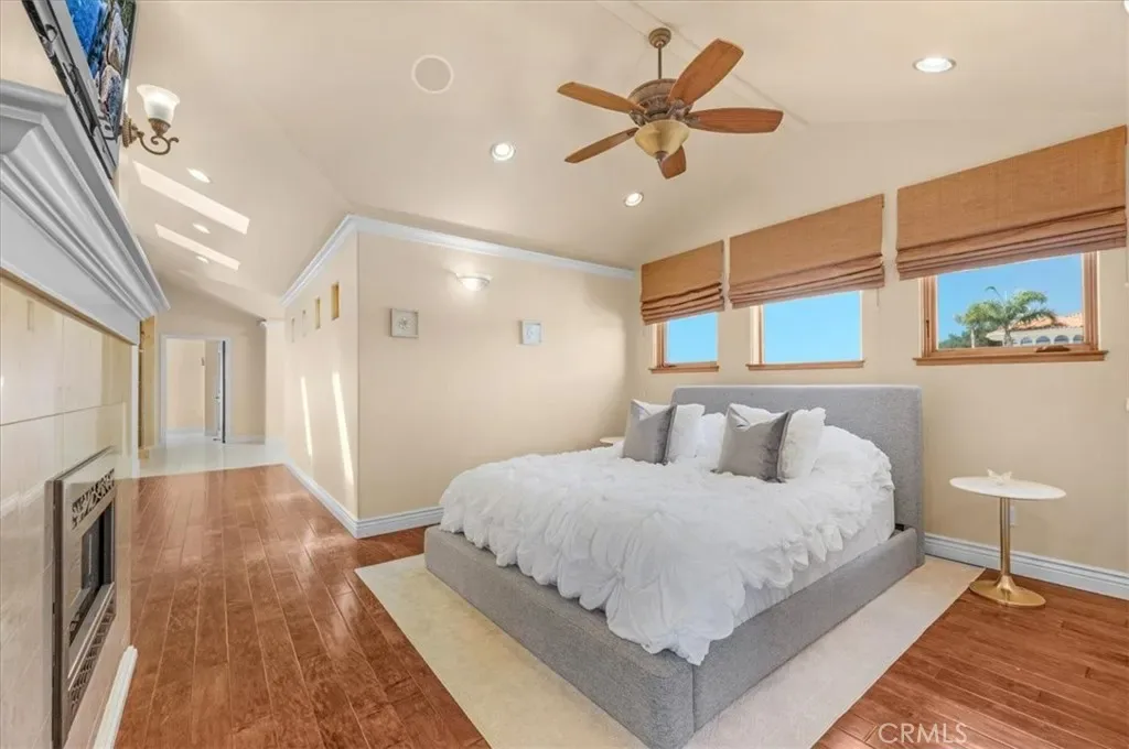 The entire third floor serves as the primary suite, complete with a sitting area, fireplace, walk-around closet, private laundry, multiple balconies, and a corner office.
