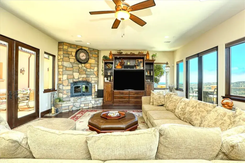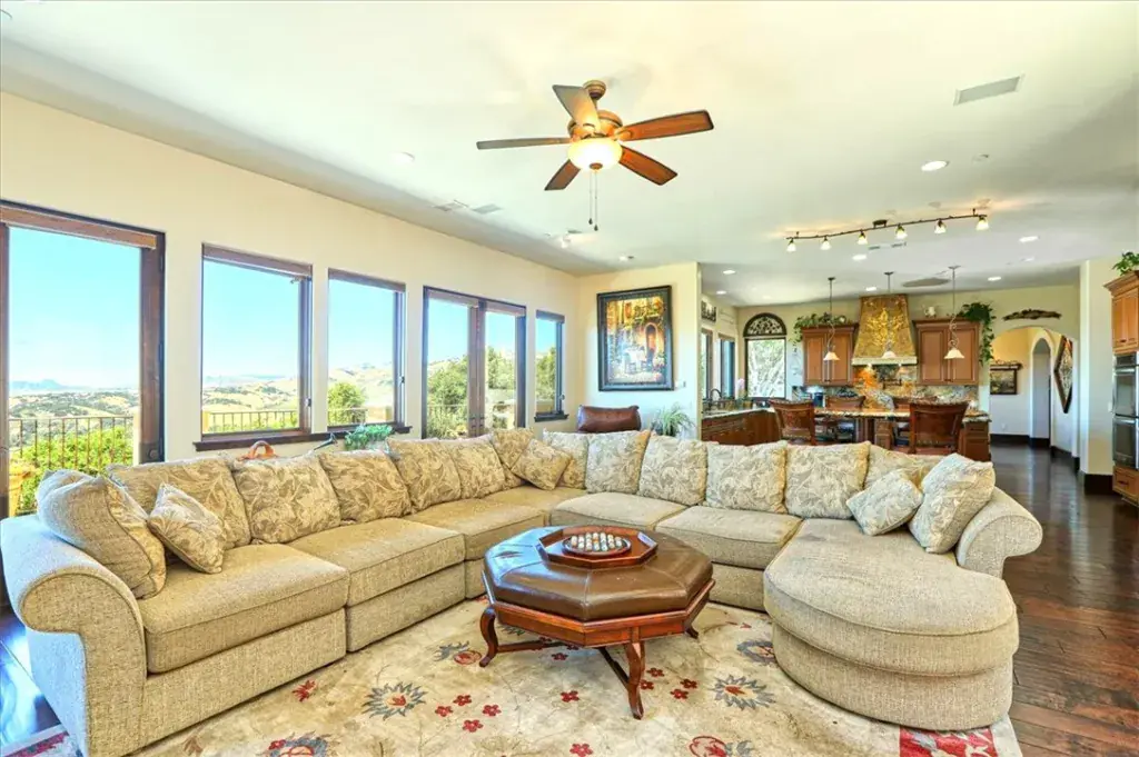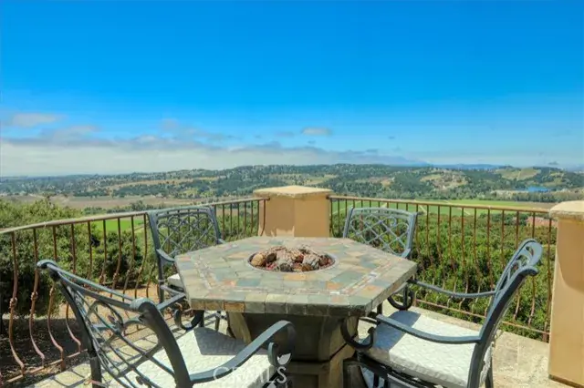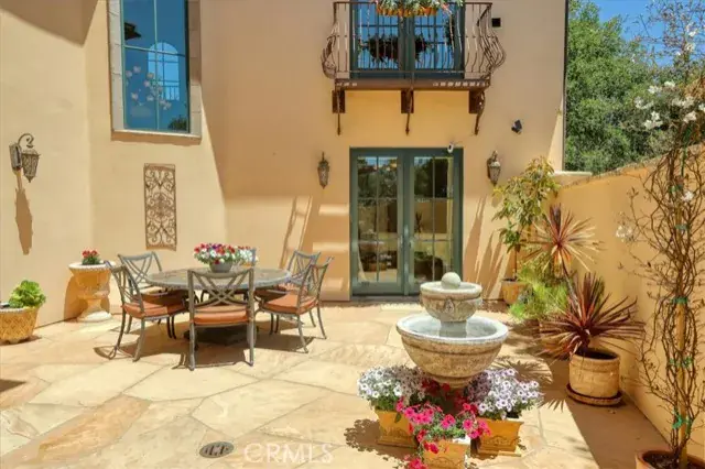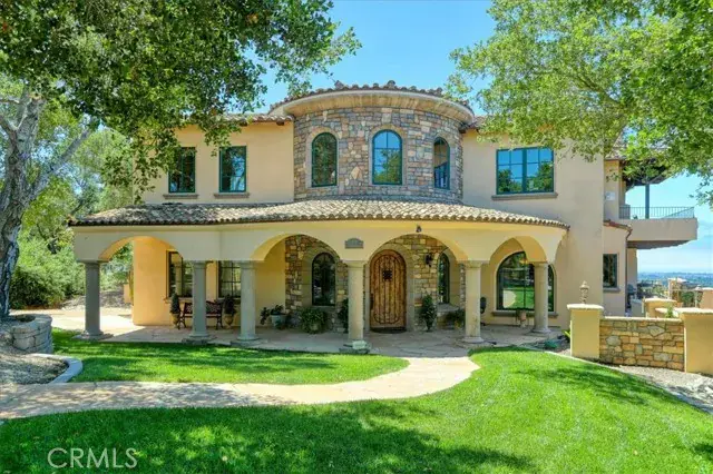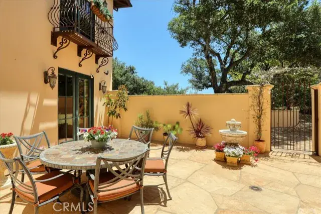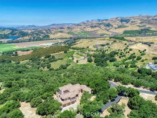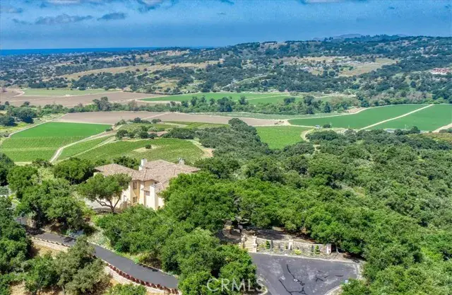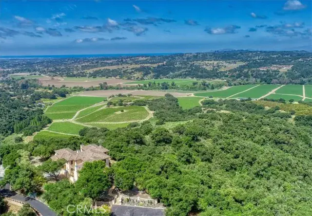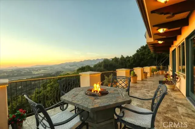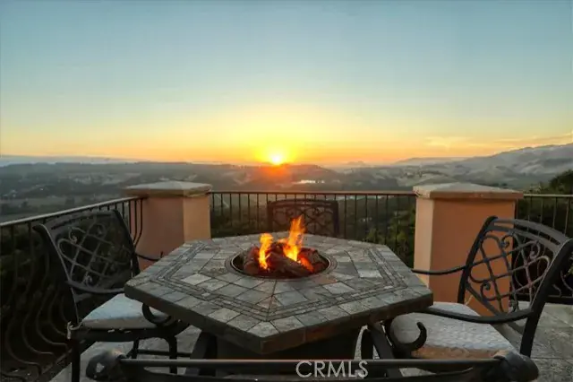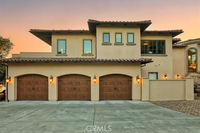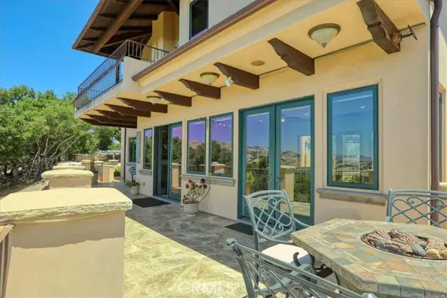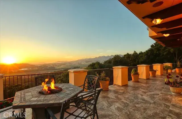 Enjoy the elegance and serenity of this magnificent Tuscan inspired villa that creates a sophisticated yet relaxing atmosphere. Absolutely incredible panoramic views stretch to the Pacific Ocean, the Edna Valley and beyond to the peaks of San Luis Obispo. Entering the home, you will find a welcoming foyer with elevated beam ceiling and beautiful custom wood and iron staircase. The versatile and thoughtfully designed floorplan includes elegant engineered wood flooring throughout the main level and natural wood beamed ceilings. Five fireplaces throughout create an intimate atmosphere. Numerous Jeld–Wen windows provide abundant natural light and outdoor views. On the main level a gourmet kitchen features beautiful natural wood cabinetry with convenient sliding pull out drawers in each cabinet, a Wolf cooktop with custom hand-crafted vent hood, built-in refrigerator, wine fridge, spacious granite counters, and more. The adjoining great room with wood burning fireplace offers access from both sides to outdoor spaces making it ideal for entertaining. On one side, picturesque vistas of the valley, vineyards and ocean await you from the view deck that is over 50’ in length. While on the other side is a protected courtyard with its own fireplace creating a relaxed ambiance to enjoy more views and sunsets. In addition to these amazing outdoor spaces is another courtyard at the southside of the residence that is a perfect place for morning coffee or breakfast as the sun rises above the oak trees. The owner’s suite with its elevated ceiling, fireplace and view deck is a tranquil place to start and end your day. The en-suite bathroom has a separate tub, walk in closet and spacious step-in shower with its own valley and ocean views. There are also two additional guest suites that include their own bathrooms, one with it’s own view deck. There is a library, a gym and an office, each with the potential for many other uses or could be converted to additional bedrooms. There is an abundance of storage closets throughout, including two intentionally placed for a future elevator if needed. On the lower level is a 500 sq ft guest studio complete with kitchenette, a full bath, private access and private view deck. There is also a hobby room near the oversized 3 car garage. Surrounded by over 4,500 acres of protected open space, Las Ventanas Ranch is a highly sought after, exclusive custom home community just a few minutes from the Village of Arroyo Grande and San Luis Obispo.