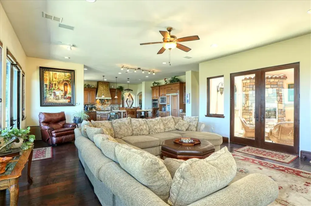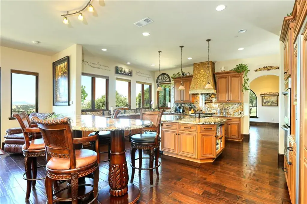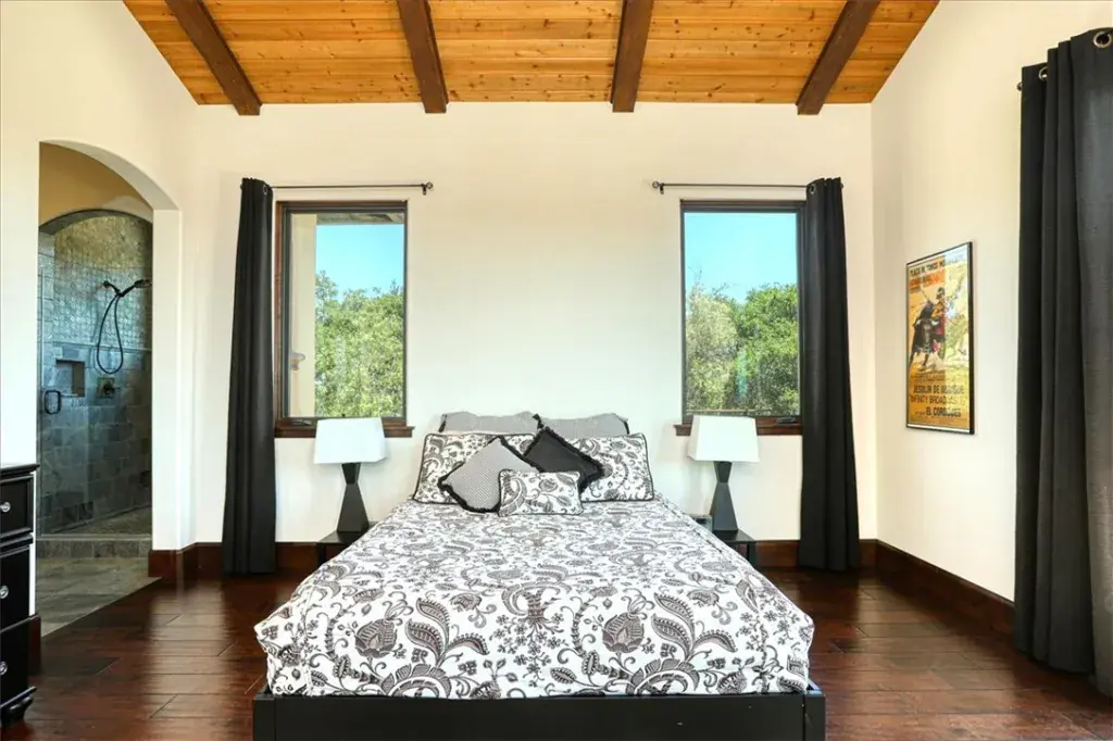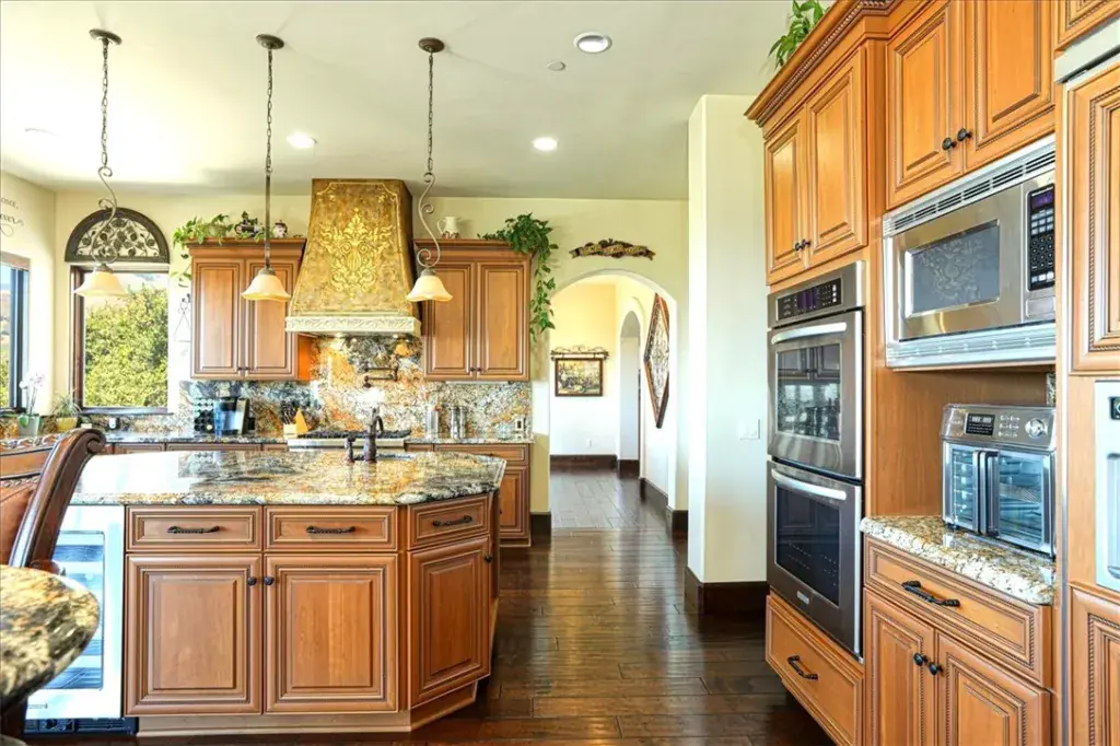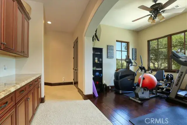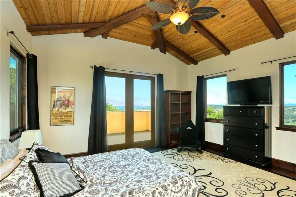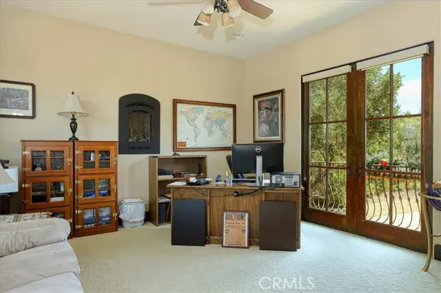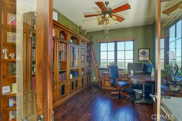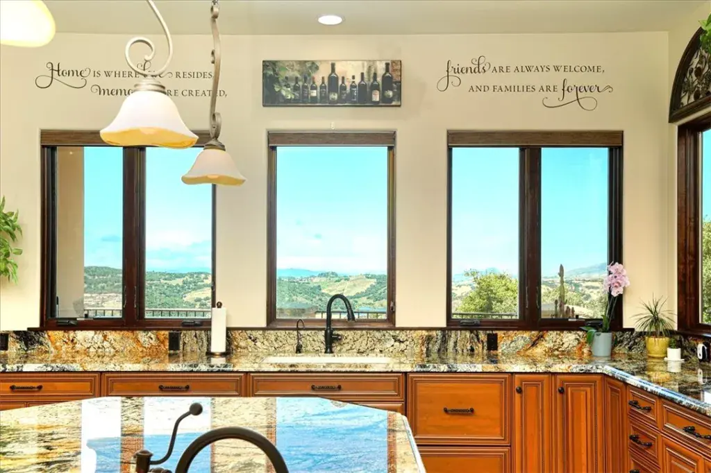 Enjoy the elegance and serenity of this magnificent Tuscan inspired villa that creates a sophisticated yet relaxing atmosphere. Absolutely incredible panoramic views stretch to the Pacific Ocean, the Edna Valley and beyond to the peaks of San Luis Obispo. Entering the home, you will find a welcoming foyer with elevated beam ceiling and beautiful custom wood and iron staircase. The versatile and thoughtfully designed floorplan includes elegant engineered wood flooring throughout the main level and natural wood beamed ceilings. Five fireplaces throughout create an intimate atmosphere. Numerous Jeld–Wen windows provide abundant natural light and outdoor views. On the main level a gourmet kitchen features beautiful natural wood cabinetry with convenient sliding pull out drawers in each cabinet, a Wolf cooktop with custom hand-crafted vent hood, built-in refrigerator, wine fridge, spacious granite counters, and more. The adjoining great room with wood burning fireplace offers access from both sides to outdoor spaces making it ideal for entertaining. On one side, picturesque vistas of the valley, vineyards and ocean await you from the view deck that is over 50’ in length. While on the other side is a protected courtyard with its own fireplace creating a relaxed ambiance to enjoy more views and sunsets. In addition to these amazing outdoor spaces is another courtyard at the southside of the residence that is a perfect place for morning coffee or breakfast as the sun rises above the oak trees. The owner’s suite with its elevated ceiling, fireplace and view deck is a tranquil place to start and end your day. The en-suite bathroom has a separate tub, walk in closet and spacious step-in shower with its own valley and ocean views. There are also two additional guest suites that include their own bathrooms, one with it’s own view deck. There is a library, a gym and an office, each with the potential for many other uses or could be converted to additional bedrooms. There is an abundance of storage closets throughout, including two intentionally placed for a future elevator if needed. On the lower level is a 500 sq ft guest studio complete with kitchenette, a full bath, private access and private view deck. There is also a hobby room near the oversized 3 car garage. Surrounded by over 4,500 acres of protected open space, Las Ventanas Ranch is a highly sought after, exclusive custom home community just a few minutes from the Village of Arroyo Grande and San Luis Obispo.