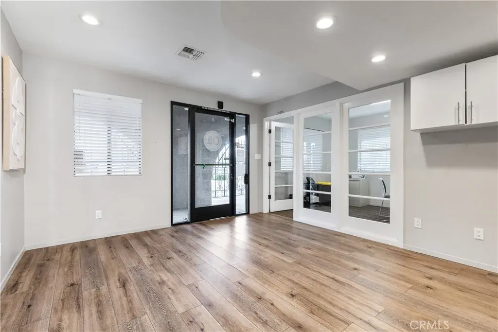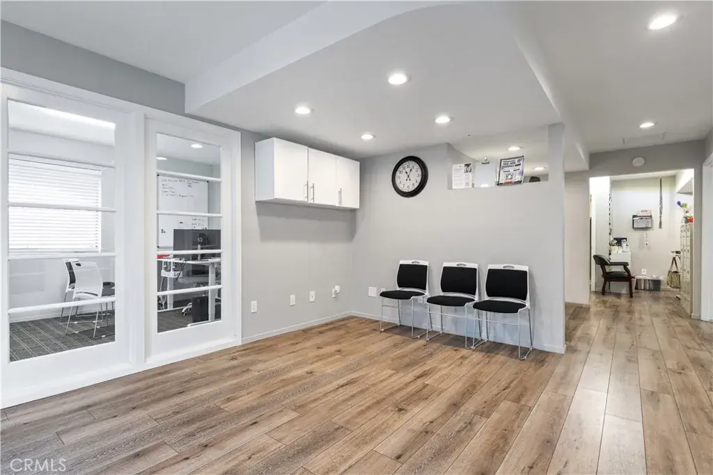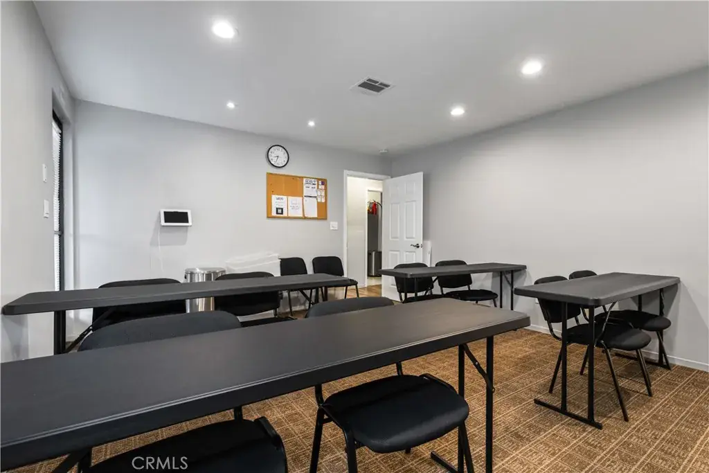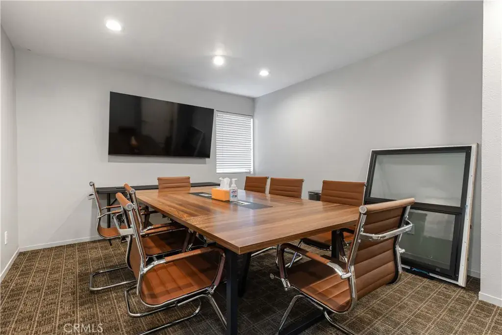 The ground-level commercial space features multiple private offices, workstations, two conference rooms, two restrooms, and a kitchen area. The flexible floor plan supports a variety of business uses and provides an ideal layout for both private and collaborative work environments.