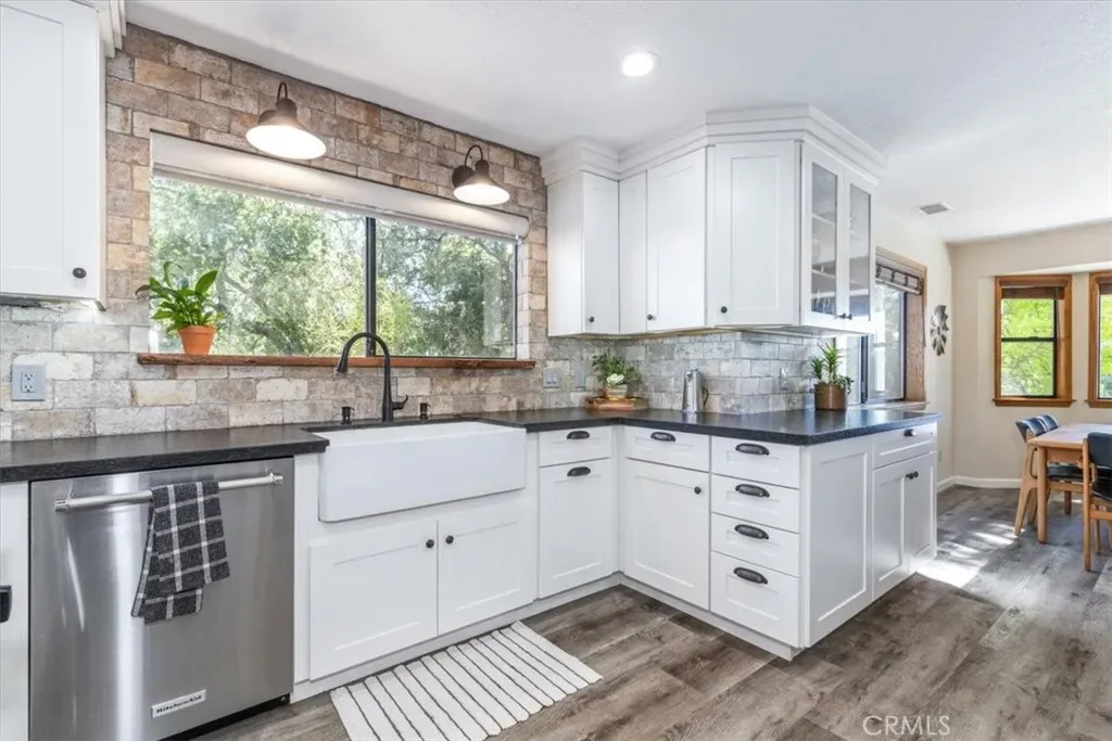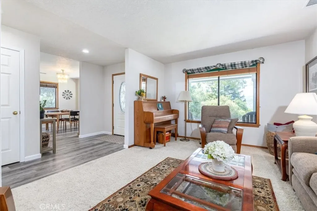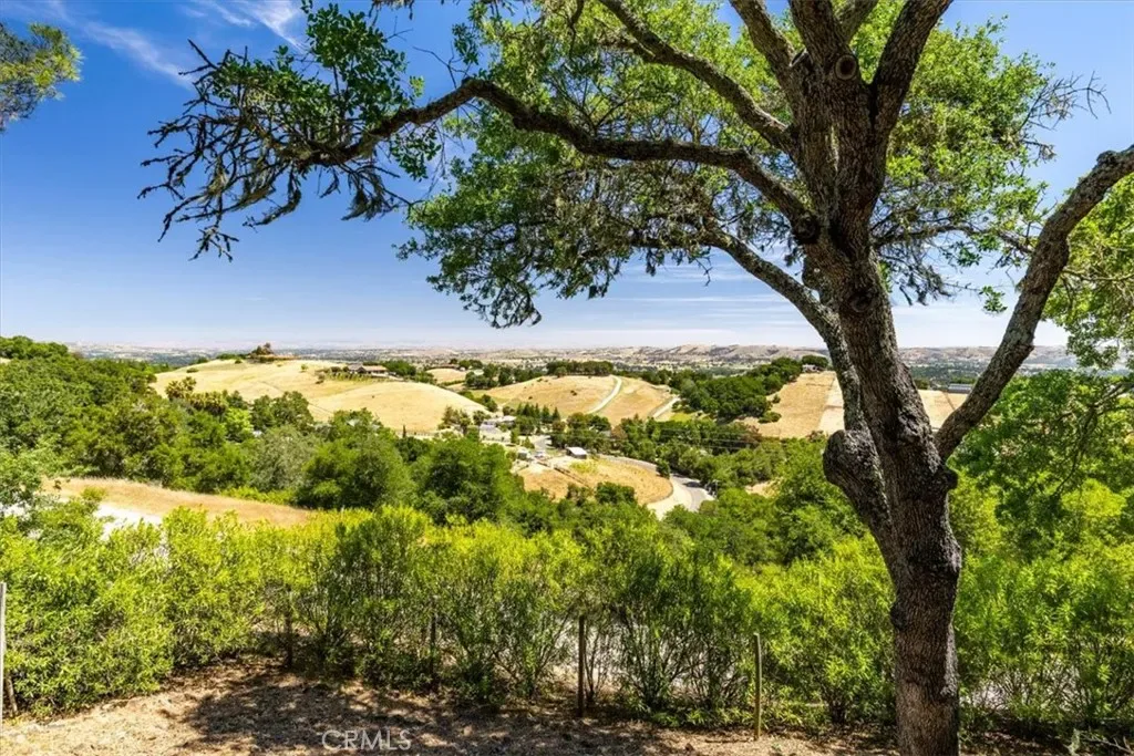Privately situated home with guest unit on acreage in the desirable Long Valley Ranch area of West Atascadero. Set on 4.29± oak-studded acres with scenic hillside views, this property offers flexibility, and convenience just minutes from Highway 101. The detached guest unit features 1 bedroom, 1 bathroom, a full kitchen, living area, and private deck—ideal for multigenerational living, guests, or potential supplemental use. The guest unit also includes a two-car garage. The main residence is a two-story home with an open-concept layout, vaulted ceilings, and abundant natural light. The updated kitchen includes leathered granite countertops, new soft-close shaker cabinetry, stainless steel appliances, and an upgraded Hague WaterMax soft water system. The kitchen flows into the dining area and spacious living room, with direct access to an expansive view deck—perfect for entertaining or enjoying the surrounding hills and valleys. Upstairs are three bedrooms, including a spacious primary suite with dual vanities and a soaking tub. The property benefits from a unique microclimate with coastal influence, helping moderate summer temperatures while providing a peaceful setting close to town amenities.