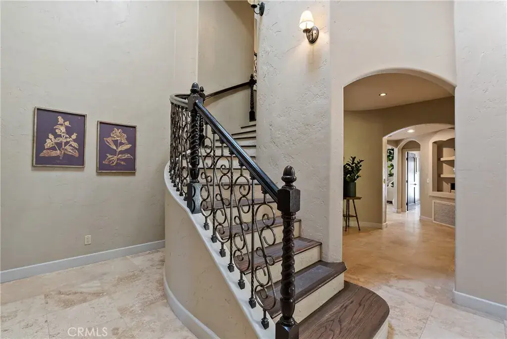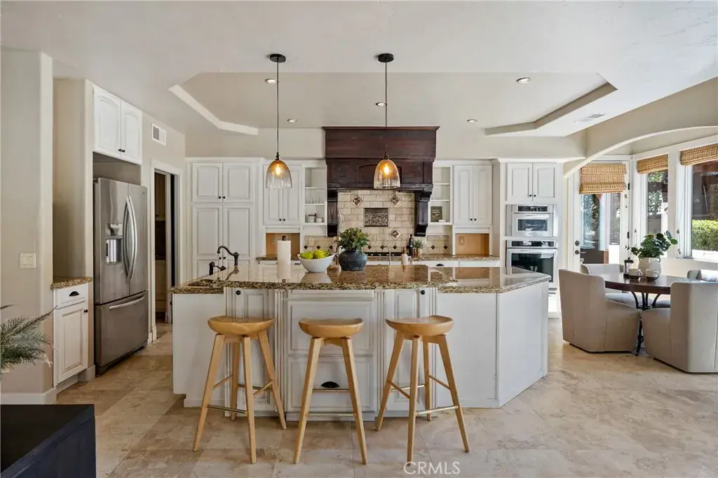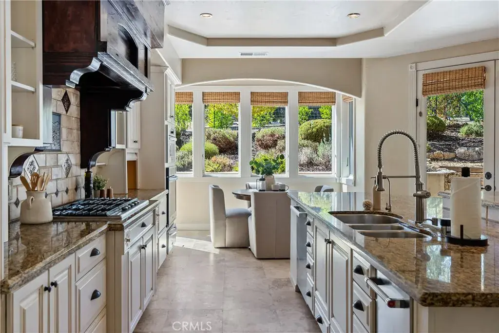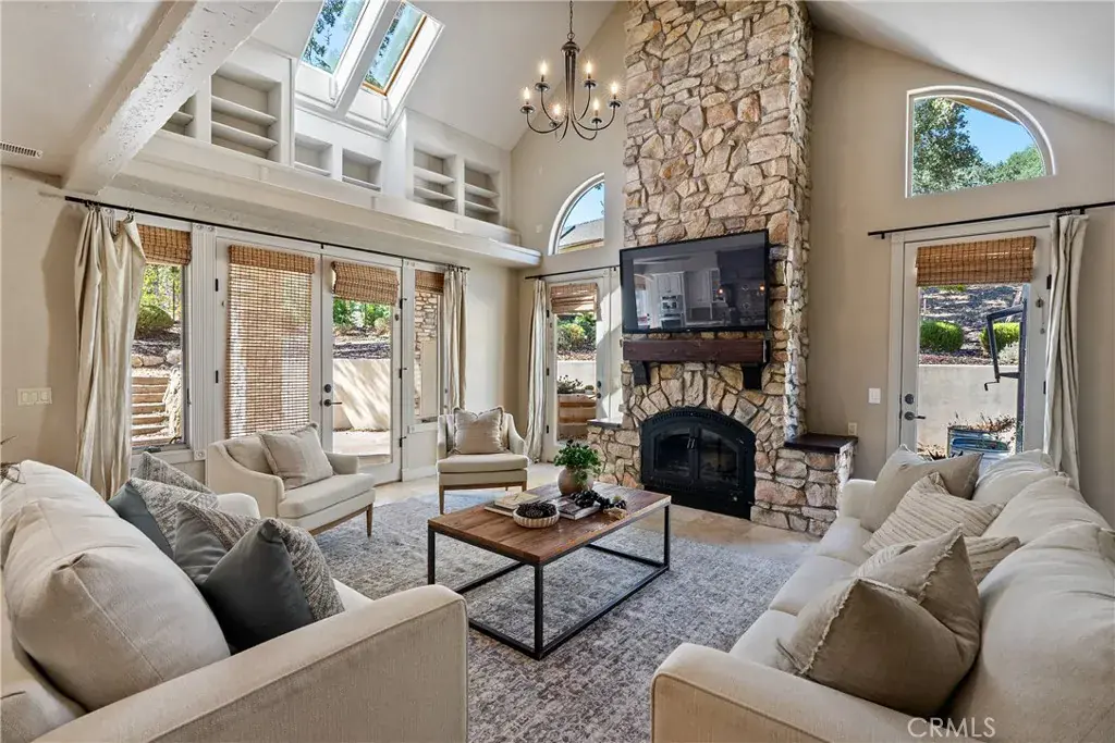From the moment you arrive, this exceptional 3636 sf, 4 bedroom, 4 bathroom home makes a statement. The extensive exterior stonework and custom arched front door welcome you into a space where craftsmanship and comfort blend seamlessly. Step inside the grand entry with soaring 13-foot ceilings and travertine tile flooring that flows throughout most of the main level. Just off the entryway, a formal dining room with French doors offers elegance and versatility. Continue into the expansive living room, where natural light pours in through skylights and multiple French doors, and a wood-burning stove adds warmth and character. At the heart of the home, the chef’s kitchen is a dream come true — featuring granite countertops, stainless steel appliances, custom cabinetry with pull-out drawers and an attached wet bar complete with granite counters, a beverage fridge and built-in wine storage. It’s ideal for both everyday living and entertaining. The main floor office provides a quiet retreat with its gas fireplace, French doors and private patio access — perfect for working from home or a cozy library. The primary suite is truly a sanctuary, boasting a spacious sitting room with built-in bookshelves, a serene bedroom and a spa-inspired ensuite bath. Enjoy a jetted tub, dual vanities, a walk-in closet and a stunning rock-surround walk-in shower. Upstairs, you’ll find three generously sized guest bedrooms, two bathrooms, a flex room with built-in desk and loft bed plus a bonus room with cabinetry and plenty of space to customize — ideal as a playroom, exercise room or anything you need it to be. Step outside to your private backyard retreat: a covered patio with built-in BBQ, concrete countertops, sink, burners, beverage fridge, fireplace and mounted TV — designed for year-round enjoyment. As a unique bonus, the property includes a charming tiny home featuring A/C, kitchenette, bathroom and a loft sleeping area — perfect for guests, extended family or creative space. This home is nestled on 1.6 oak-studded acres on a private drive, offering a true sense of seclusion. Despite its peaceful setting, it’s conveniently located near downtown Atascadero, with easy access to the freeway and local schools. This home feels like something out of a storybook — and now, it’s ready to be part of yours. Please review the Virtual Tour for additional information.