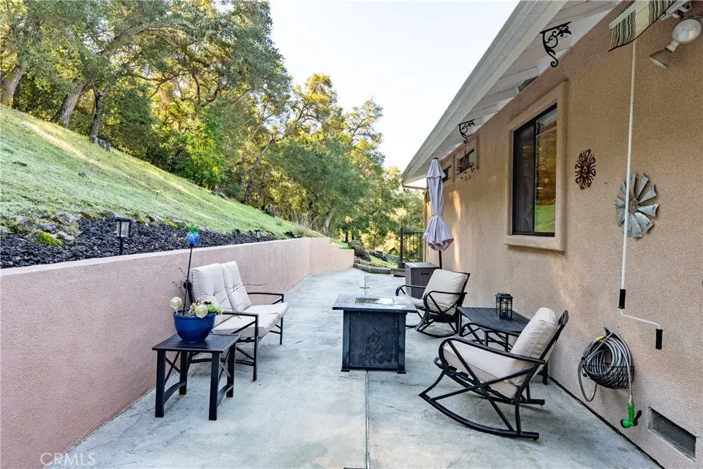 Tucked gracefully into the hillside on 4.27 tranquil acres, this stunning 2700 sf,3 bedroom, 3 bathroom home offers the perfect blend of privacy, comfort and breathtaking views. Surrounded by oak trees and natural beauty, the setting feels peaceful and secluded while still offering plenty of space to enjoy the outdoors. Step inside the main living area and you’re immediately welcomed by beautiful hardwood floors, vaulted ceilings and expansive windows that frame the spectacular scenery beyond. A quaint wood-burning stove with a brick surround anchors the living room, creating a cozy focal point for cool evenings. The dining area is thoughtfully positioned between the living room and kitchen, making it ideal for both everyday living and entertaining. The contemporary kitchen features granite countertops, stainless steel appliances and a spacious walk-in pantry, offering both style and functionality. Down the hall, you’ll find two comfortable guest bedrooms and a well-appointed main bathroom. At the end of the hallway, the primary suite serves as a private retreat, boasting vaulted ceilings and multiple windows that flood the space with natural light. The ensuite bathroom includes dual granite topped vanities, a walk-in closet and a separate bathing area with a relaxing soaking tub/shower combination. Downstairs, a spectacular bonus area provides endless possibilities—perfect for a family room, exercise space, hobby area or even future expansion. Outside, the property truly shines. A spacious back patio offers ample room for entertaining or simply relaxing and taking in the surroundings. To the side of the home, enjoy a fantastic firepit and putting green, sure to provide hours of fun and memorable gatherings. A large RV parking area accommodates a trailer, boat or additional vehicles with ease. With its divine location, open space and serene natural setting, this exceptional property is a must-see for those seeking privacy, views and a true connection to nature. Please review the Virtual Tour for more information.