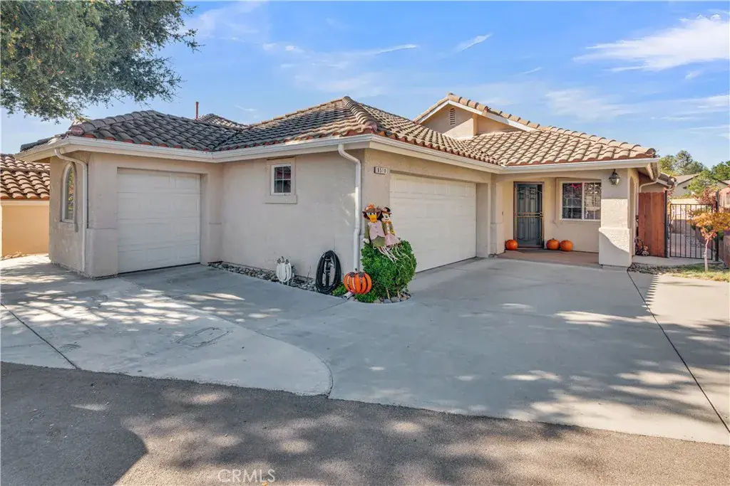 Welcome to 8510 Paseo De Caballo located in the gated community of Chalk Mountain Village of South Atascadero! Offering approximately 1,547+/- square feet, this very well maintained 3-bedroom, 2-bath residence sits on a low-maintenance parcel with solid concrete patios, thoughtful low maintenance landscape and 3 car driveway parking. The property also includes an attached 2-car garage with a golf cart garage that could also make for a great workspace! Inside, the floor plan flows easily from the main living areas into the two guest bedrooms, full bath, and then primary suite off the living room. The kitchen contains a walk-in pantry and is open to the dining and living room with a gas fireplace. These combined areas all have newer vinyl plank floors, and the tiled entryway that ties them altogether creating a spacious vaulted great room look. The primary suite features private bath, walk-in closet and views of the backyard patio. The backyard offers a clean, low-maintenance setting along the edge of the development, delivering distant views of Chalk Mountain Golf Course, surrounding hills and forest settings. HVAC system 6+/- months old, including a split-unit added in the garage! Chalk Mountain Village provides residents with access to a community pool, 3 cabanas and kitchen space for private events, as well as park settings and walking paths. For golf enthusiasts, Chalk Mountain Golf Course is located right next door and there is a 5′ access easement to the course within the development! The gated environment offers added privacy while keeping you close to the revitalized downtown Atascadero, local restaurants, and entertainment. And being located on this south-side location also bears a milder micro-climate and in close proximity to San Luis Obispo, Paso Robles, and the Central Coast shoreline! Combining comfort, convenience, and a desirable location here for you and the gool ol’ SLO Life!