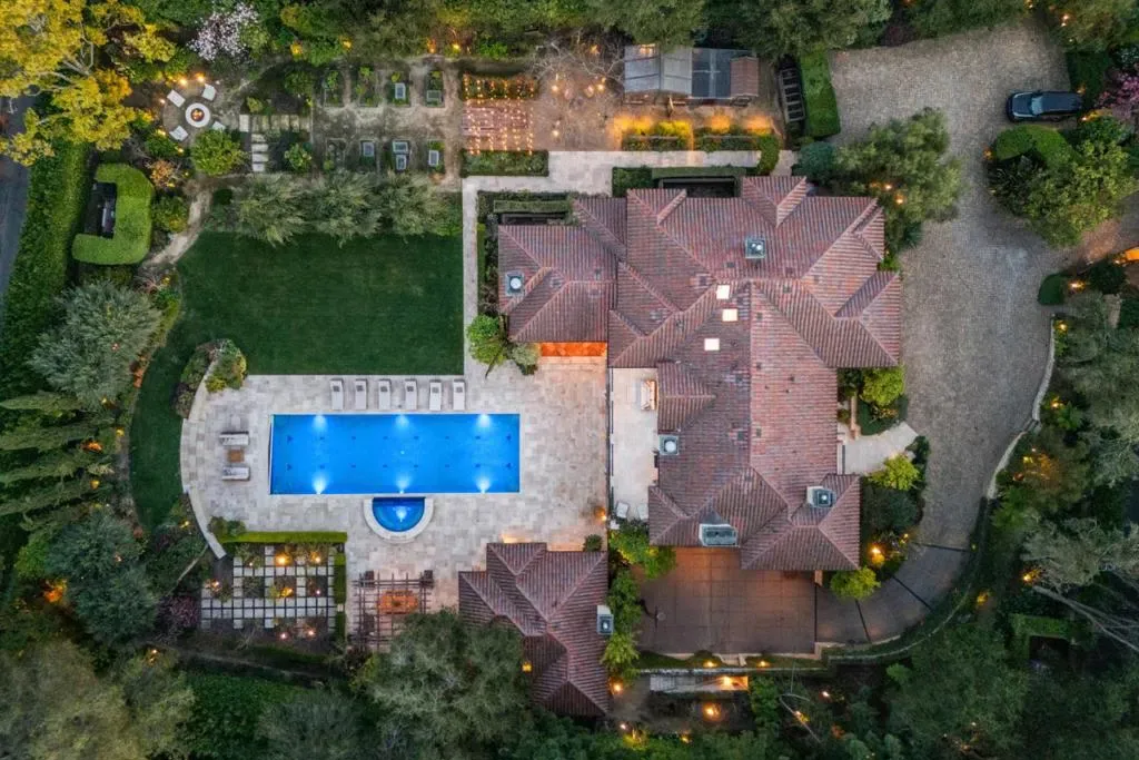 Privately set on 1.06 acres in the Menlo Circus Club area, this magnificent estate was built by renowned builder Pacific Peninsula Group. Spanning three levels with elevator, the rooms are all grand with refined formal rooms, a dramatic two-story library, expansive family room and remodeled kitchen, recreation room, theatre, music room, fitness center with sauna and steam, plus an exceptional wine cellar. The main home has 6 bedroom suites 5 upstairs and 1 on the main level along with a spa bath, 3 half-baths, and a separate 1-bedroom, 1-bath guest house. Resort-inspired grounds unfold with a pool, spa, and barbecue kitchen, while extraordinary gardens provide year-round color, meandering paths, and secluded areas for relaxation. Eight vegetable beds, a large greenhouse, chicken coop, and picnic area support a true farm-to-table lifestyle. Located in one of Athertons most exclusive neighborhoods, this property is moments from Stanford University, top public and private schools, Sand Hill Road venture capital firms, leading Silicon Valley tech campuses, and approximately 25 minutes from San Francisco and San Jose International Airports.