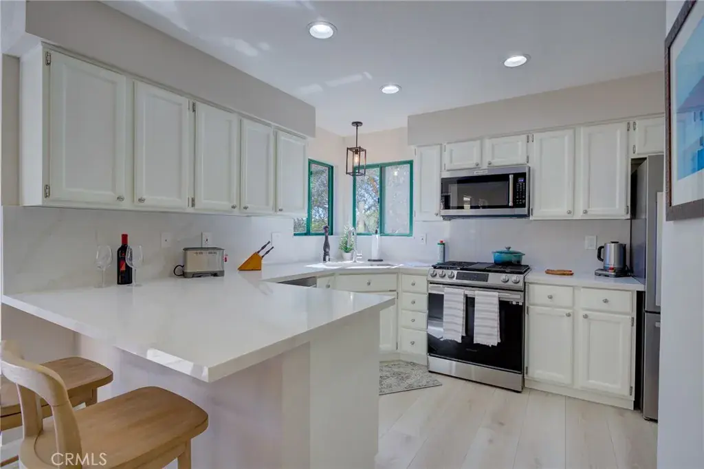 This beautifully updated residence is nestled within the prestigious Pelican Point community of San Luis Bay Estates in scenic Avila Beach and is truly move-in ready. Set behind the gates of one of the Central Coast’s most sought-after, golf-cart-friendly neighborhoods, this home offers an exceptional blend of comfort, style, and breathtaking natural surroundings. Thoughtfully updated throughout, the home features air conditioning and new forced-air heating, providing year-round comfort. The light-filled interior showcases modern finishes and a well-designed layout that flows seamlessly to the outdoor living spaces, where expansive hillside and valley views create a tranquil backdrop for everyday living and entertaining. The home offers newer water-resistant modern flooring, Carrara quartz slab countertops, a quartz backsplash, and a stunning quartz-surround fireplace that serves as a focal point of the living room. The bright and inviting kitchen features stainless steel appliances, brushed nickel hardware, and ample space for cooking and gathering. Additional upgrades include 5-inch baseboards, double-pane windows, modern light fixtures, recessed lighting, and tasteful, updated bathroom finishes. As an end unit backing to open space, the home provides exceptional privacy and a peaceful setting. Pelican Point residents enjoy a unique lifestyle with easy access to the San Luis Bay Golf Course, miles of walking and biking trails, and the charm of Avila Beach’s waterfront, restaurants, wine tasting, and boutique shopping, all just minutes away. Whether you’re seeking a full-time residence or a refined coastal retreat, this home delivers privacy, views, and the ease of living that defines San Luis Bay Estates. This is a rare opportunity to own a move-in-ready home in one of Avila Beach’s most desirable gated communities.