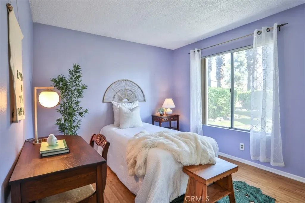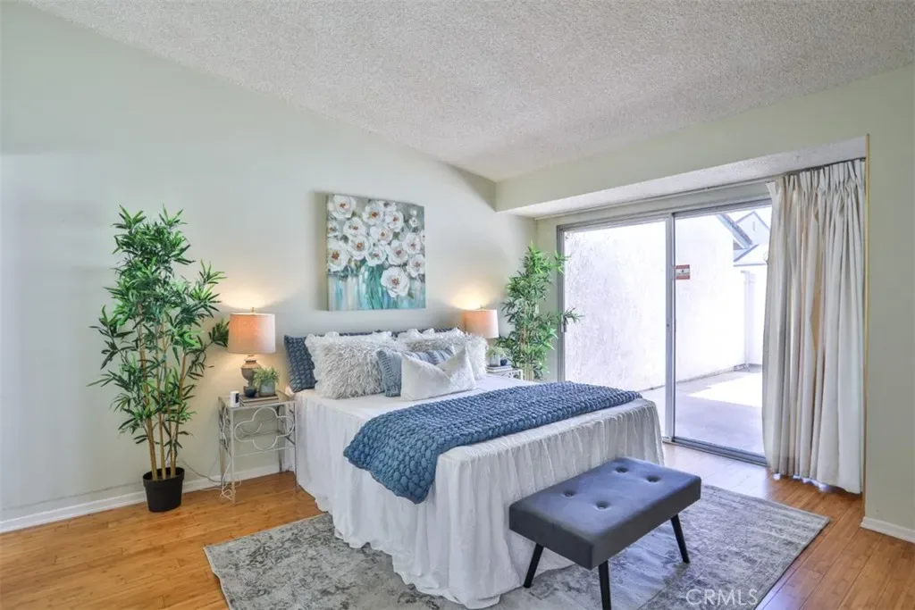 Mature palms, pines, and sycamores welcome you to this single-level end-unit condo in the Sierra Palms community of Azusa, offering the comfort of a home with the convenience of low-maintenance living. With no interior stairs and only a minimal step at the entry, the layout provides easy accessibility for a wide range of buyers. Inside, abundant natural light fills the home, highlighting the attractive bamboo floors and creating a bright, welcoming atmosphere. The remodeled kitchen features soft-close cabinets and drawers, generous storage, and appliances included to make move-in simple. Central air and heat provide year-round comfort. The spacious primary suite includes a walk-in closet, a private en-suite bathroom with a walk-in shower, and its own patio access. From the living room and patio you’ll enjoy open views because there are no nearby buildings to the east or south, creating a sense of openness that is rare in many condo communities. One of the standout features is the vinyl-fenced private yard and patio area, something many condos do not offer. It provides excellent outdoor space for relaxing, entertaining, pets, or gardening. As an end unit with its own yard, the home feels more like living in a single-family residence than a typical condo. Sierra Palms is known for its mature landscaping and open, park-like grounds, creating a community that feels spacious and peaceful. This home sits adjacent to the community basketball court, pool, and picnic area for easy access to recreation and gatherings. The HOA also offers a program allowing residents to apply for a third parking space for households with three vehicles. The location is exceptional with Azusa Pacific University across the street, Citrus College about half a mile away, and Citrus Crossing nearby with shopping, restaurants, and a movie theater. Citrus Station for the Metro A Line is about half a mile away, providing convenient rail access from Los Angeles to Pomona without the stress of driving. Outdoor recreation is also close by with the San Gabriel River Trail and the beautiful new Rosedale Great Park. Even better, the Sierra Palms community qualifies for special financing programs including City National Bank’s Ladder Up program with a $20,000 grant and 3% down with no mortgage insurance, as well as the Opportunity Loan program offering zero down and forgivable closing-cost assistance for qualified buyers. Welcome to a great home for a great life!