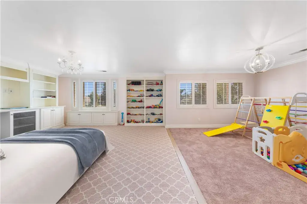 Retreat to the luxurious primary suite, complete with fireplace, sitting area, and a spa-inspired bathroom featuring a soaking tub, steam shower, and custom upgrades. Secondary bedrooms are generously sized, with one currently configured as a media/game room. The expansive upstairs bedroom can be easily converted into two separate rooms, providing the flexibility for a fifth bedroom if desired.