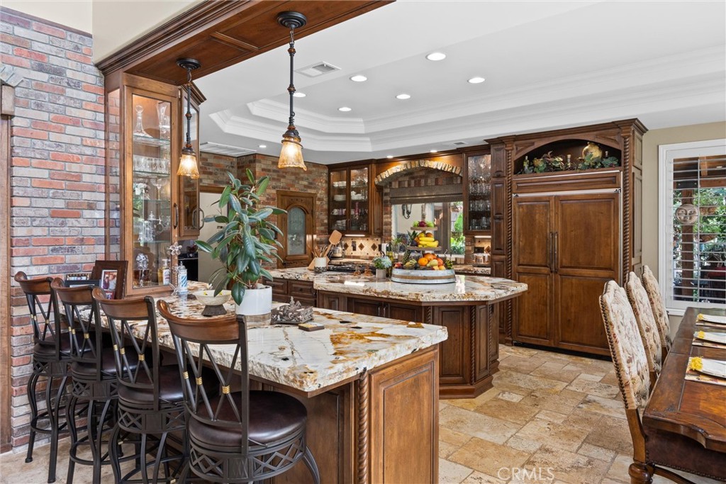 A rare opportunity to own an exceptional custom home perched on the serene Kern River. Complete with Riparian water rights. This fully remodeled approx. 4,199 sqft home with 4 bedrooms (3 with en-suite baths), 4 baths and 1-3//4 bath which is easily accessed from the pool. This masterpiece home offers resort-style living with breathtaking River and Canyon views. Designed for refined comfort the master and guest bedrooms have balconies with amazing views of the River for Sunrise coffee, or Sunset relaxing. The master bedroom has one of three fireplaces with spa-style bath, and extra large custom walk-in-closet with granite island. The heart of the home boasts hand made carved doors and a unique wine area off the formal dining room. The outside has a pebble tech pool surrounded by lush landscaping with sounds of the river. Just off the kitchen is a covered outdoor patio with a full kitchen. Take a walk in the back yard and go over the bridge big enough for a golf cart togo across and relax on your extended backyard and go fishing or play games. You feel like you are living in the mountains but are only 15mins from downtown. This is a truly retreat style living.