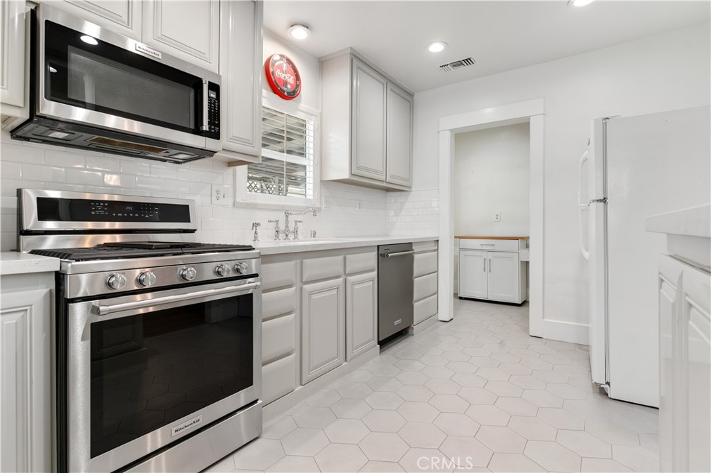 This beautifully updated 2-bedroom, 1-bathroom home in the desirable Oleander-Sunset neighborhood offers a comprehensive blend of modern efficiency and charming character. The home has undergone extensive renovations, making it a turn-key opportunity for buyers seeking a high-quality starter home or investment. Home FeaturesFully Updated Kitchen featuring quartz countertops, a new subfloor, modern refinished cabinets, and a new appliance package. The home includes updated HVAC, a new electrical panel, updated plumbing, and dual-pane windows for improved energy efficiency. New recessed lighting, ceiling fans, and updated fixtures have been installed throughout the home and bathroom. The front features a lovingly updated courtyard and a new front door, while the rear offers a newer patio cover equipped with fans and lights.Additional Amenities: Includes a detached garage and a large backyard that may offer potential for an Accessory Dwelling Unit (ADU)