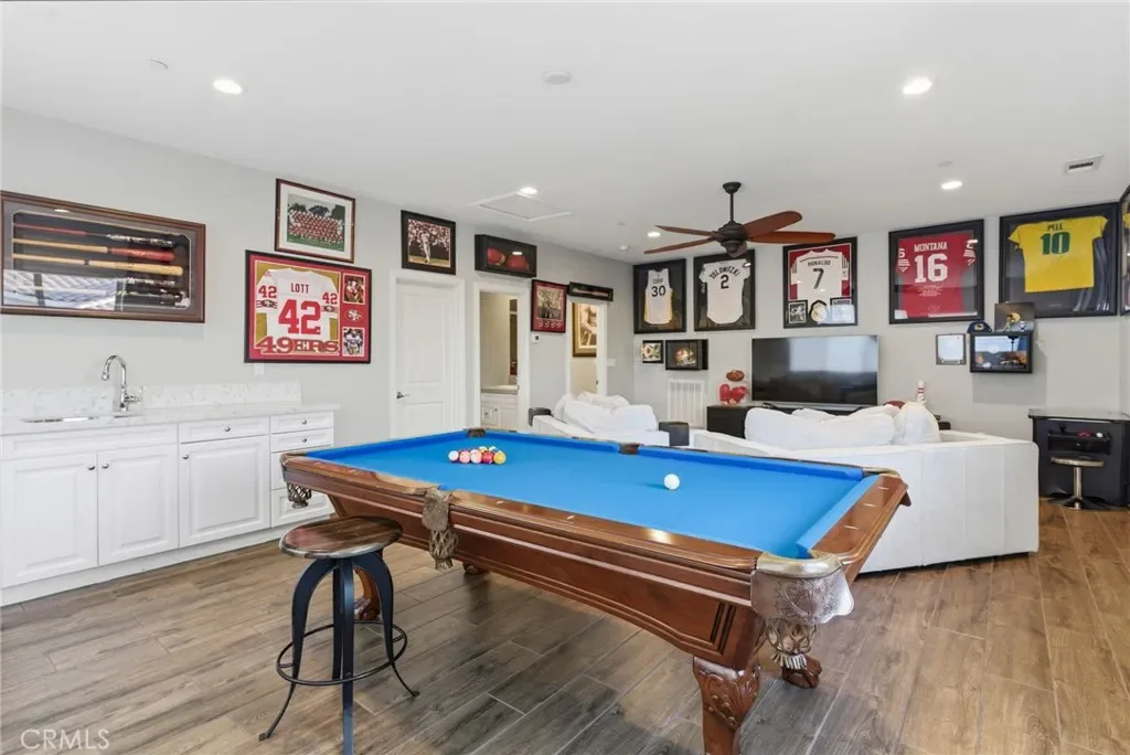 Luxury living in the prestigious Mahogany community of Belcourt Gallery. This exceptional residence offers 5 bedrooms, including a grand master suite & guest room with private bathroom downstairs. The upstairs game room has a mini fridge, sink, & its own private bedroom & bathroom. Gourmet kitchen features KitchenAid stainless steel appliances with double ovens. The garage is upgraded with RaceDeck flooring, hexagon lighting & Tesla charger. The resort-style backyard is an entertainer’s dream, sparkling pool with crushed abalone shell & glass finish, cascading waterfalls, & spa. The landscape is highlighted by artificial turf & custom design elements featuring Canary Island Date Palms. Halfcourt basketball area by Courts & Greens. A covered patio with a fireplace plus 2 fire pits overlooking the pool deck. The covered outdoor kitchen is fully equipped with a BBQ, flat grill, sink, two-burner stove, refrigerator, with pool side seating for the ultimate hosting experience. PAID SOLAR!!