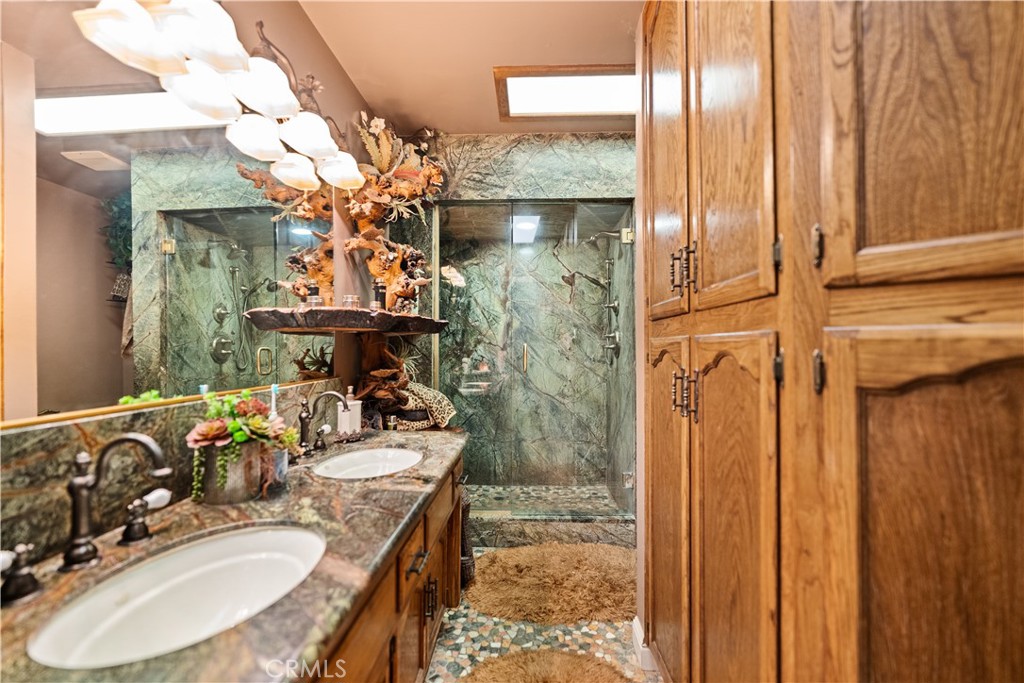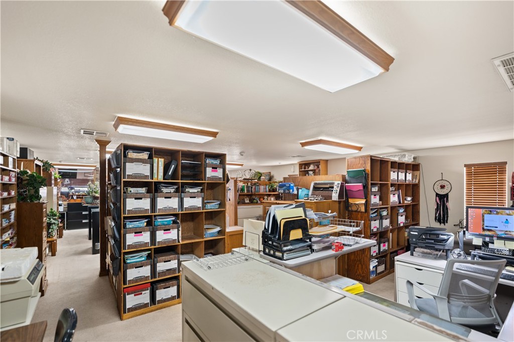 In addition to the main residence, the property includes an approximately 1,400 sq. ft. detached office building featuring a 12′ x 12′ fireproof room, kitchenette, and an oversized half bath. This flexible space is well-suited for a home office, game room, guest quarters, or potential conversion to additional bedrooms.