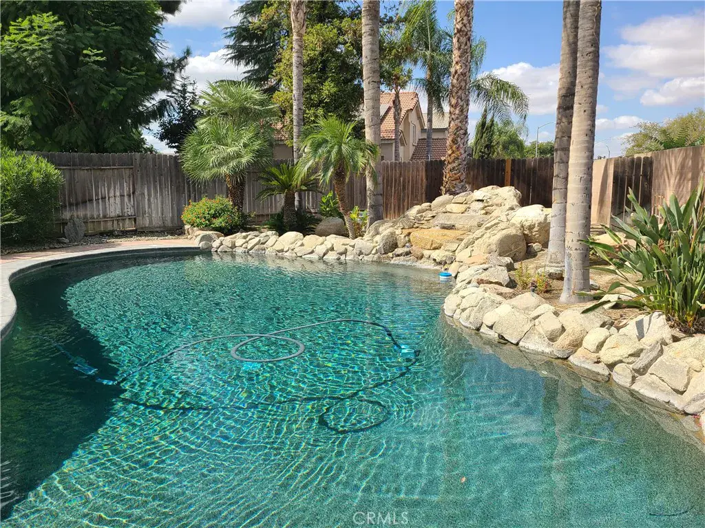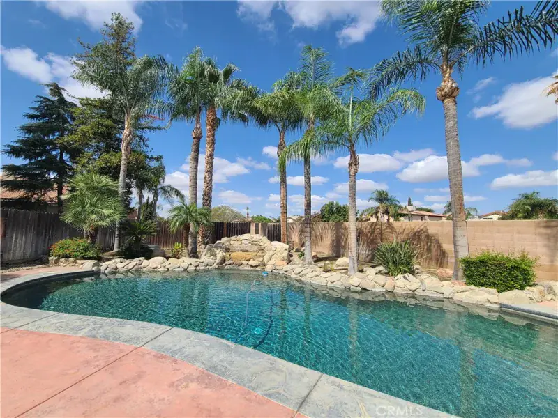 Looking for a private Oasis? Look no further, this property checks off all of your boxes! Cul-de-sac lot over 13000 square feet. Extra large RV/Concrete area behind the beautiful custom wrought iron gate and more RV parking outside the gate in front. There is a huge covered patio for entertaining with french doors opening from the dining room. The patio overlooks the incredible rock waterfall that cascades into the swimming pool. Majestic palms surround the pool area and behind the pool is a separate garden area. Big grass area for outside games and several citrus trees complete this incredible backyard. Newer items include: Roof has a 50 year dimensional,hot water heater and smart pool pump. Primary suite has french doors leading to a relaxing spa on the patio. Need 4 bedrooms? The 2 car garage is permitted/vented and finished, endless possibilities