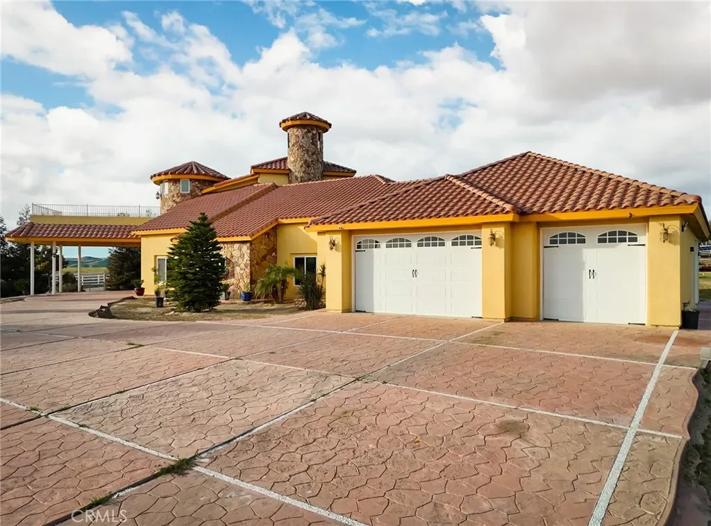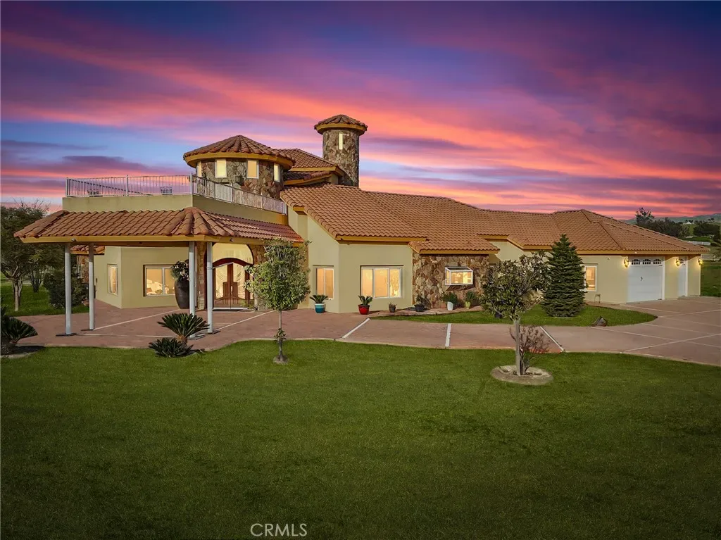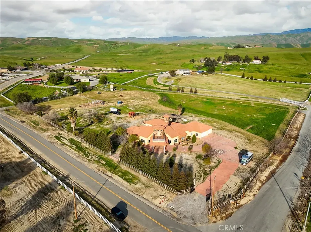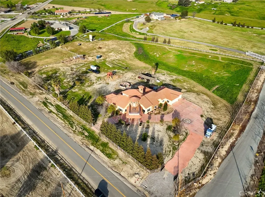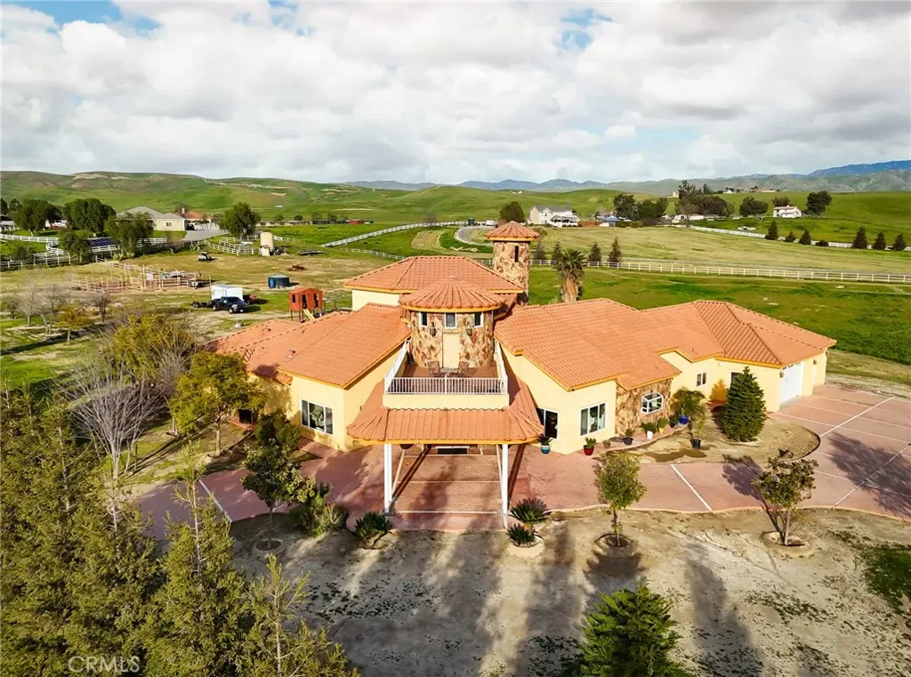 Welcome to this extraordinary 5,500+ sq. ft. estate featuring a four-bedroom, 4.5-bath split-wing floor plan on over six acres. This impressive property includes an office, reading room, and an inviting bar/game room perfect for work and entertaining. Enter through elegant double doors into soaring ceilings and a bright, open living space. The expansive primary suite offers dual walk-in closets, a Jacuzzi soaking tub, and a spa-style shower with multiple jets. All secondary bedrooms are ensuite for added comfort and privacy. The chef’s kitchen features upgraded appliances, double ovens, and a large center island. Additional highlights include surround sound, extra water storage, and thoughtful upgrades throughout. Enjoy stunning mountain views and sunsets from the upstairs patio. Outdoors, pipe fencing makes this property ideal for horses or animals, complemented by fruit trees and a large fire pit for memorable gatherings. Luxury, space, and country living!