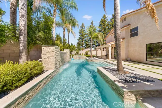 Step outside to your private backyard oasis — a newly remodeled pool and spa with waterfall feature, putting green, and expansive patio space designed for relaxation and entertaining.