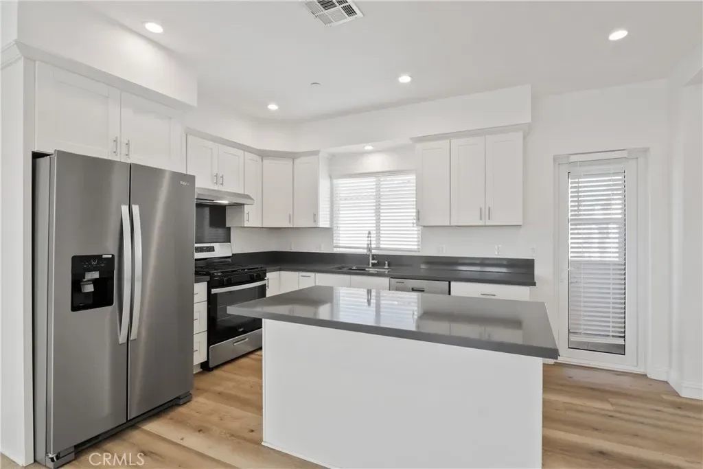 Newer Townhome features 4 bed rooms and 2.5 bath rooms, modern looking, bright and airy; 2 car garage with direct access to home; Laminated wood floor; Large living room; Master bedroom with walk-in closet; Covered patio is a great place to relax; Kitchen features stainless steel appliances, quartz countertops and opens up to dining room and living room. Separate laundry room with washer & dryer. It is conveniently located near shops and restaurants, easy access to Fwy 10 & 605.