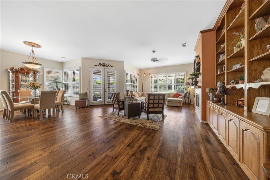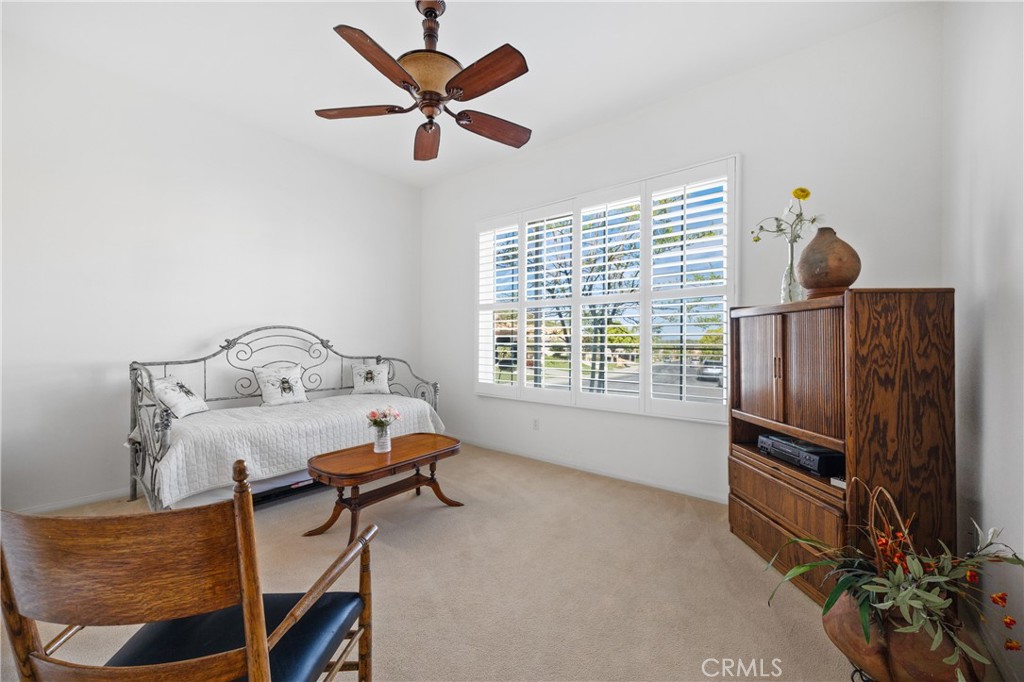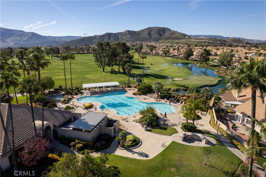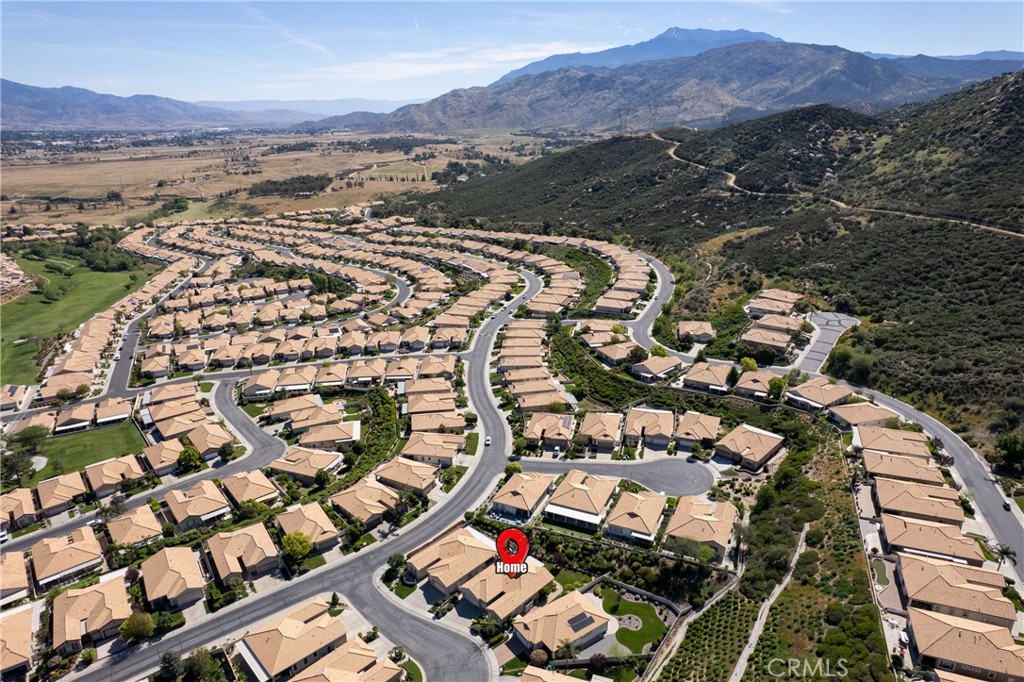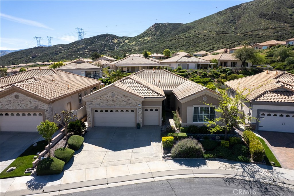 Welcome to an exceptional residence within a prestigious guard-gated 55+ country club community. This beautifully appointed home offers 2 bedrooms, 2.5 baths, and a private office, thoughtfully designed with a grand oversized entry and elegant living spaces. A custom fireplace adds warmth and sophistication, while the lush backyard and serene mountain views create a peaceful private retreat on an expansive lot of over 9,500 sq ft. A three-car garage with golf cart access provides added convenience, and residents enjoy exclusive country club amenities including dining, bar, pool, jacuzzi, pickleball, and golf. A sophisticated blend of comfort, elegance, and resort-style living.