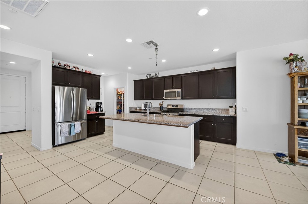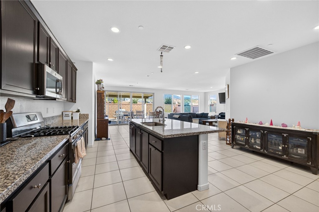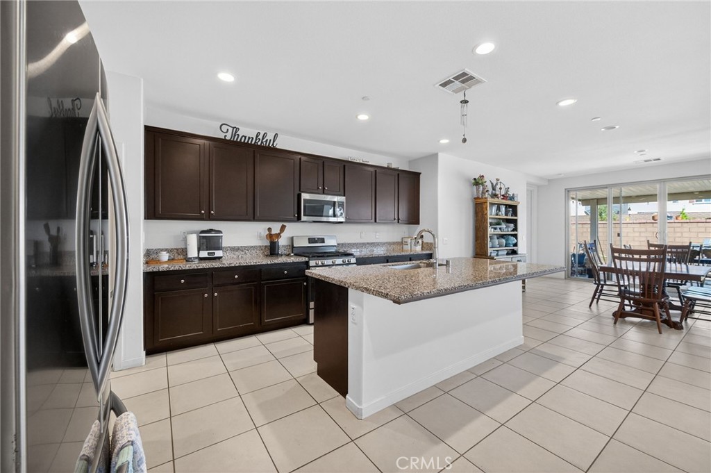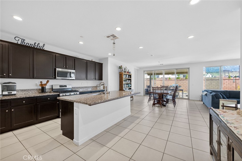 The kitchen is truly the heart of the home—spacious, functional, and perfect for hosting. You’ll love the massive island, beautiful granite countertops with tons of space, abundant cabinet storage, and a cozy pantry, all opening seamlessly to the dining and living areas. With large windows bringing in an abundance of natural light and 10-foot double sliding doors, the indoor-outdoor flow is absolutely effortless.