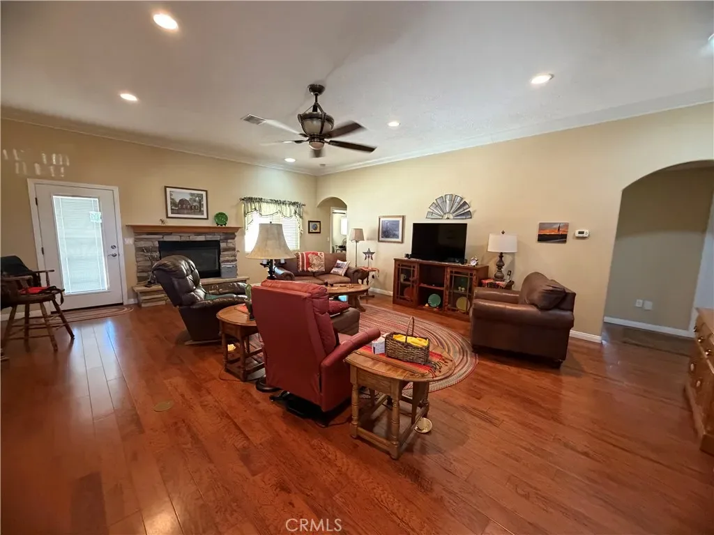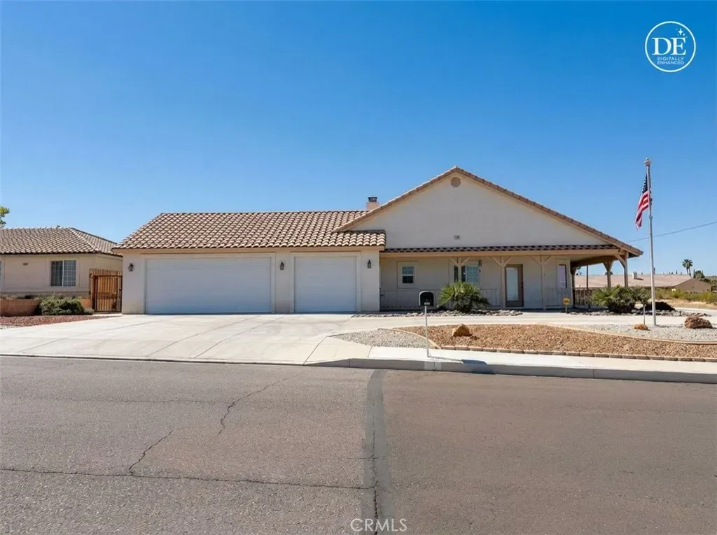 Welcome to this beautifully crafted custom-built 2008 home, offering 2,017 square feet of thoughtfully designed living space and ideally situated on a desirable corner lot! The front yard features attractive, low-maintenance landscaping with a blend of concrete and rock scaping, while a charming covered patio wraps around the front and extends along one side—perfect for relaxing and enjoying the outdoors. The oversized concrete driveway provides ample parking and leads to a spacious three-car garage. Inside, you’ll find a well-planned layout featuring a large kitchen with abundant cabinetry, distinctive green granite countertops, and a sunny breakfast nook surrounded by windows. The expansive living room is perfect for gatherings and showcases a fireplace that has never been used, ready for its first cozy night. This home offers three bedrooms, two full bathrooms, and a convenient half bath located near the garage entry. Just off the main living area, the oversized laundry room adds functionality and leads into the private primary suite. The primary bedroom features dual access from both the living room and laundry room, a walk-in closet, and a sliding glass door that opens to the backyard patio. The en-suite bathroom includes a large tiled walk-in shower for a spa-like feel. Throughout the main living areas, you’ll find beautiful real wood flooring, while the bedrooms offer comfortable carpeting. Step outside to a fully fenced backyard with a combination of block and wood fencing, providing excellent privacy. This unique home blends comfort, space, and thoughtful design—ready for its next owner to enjoy!