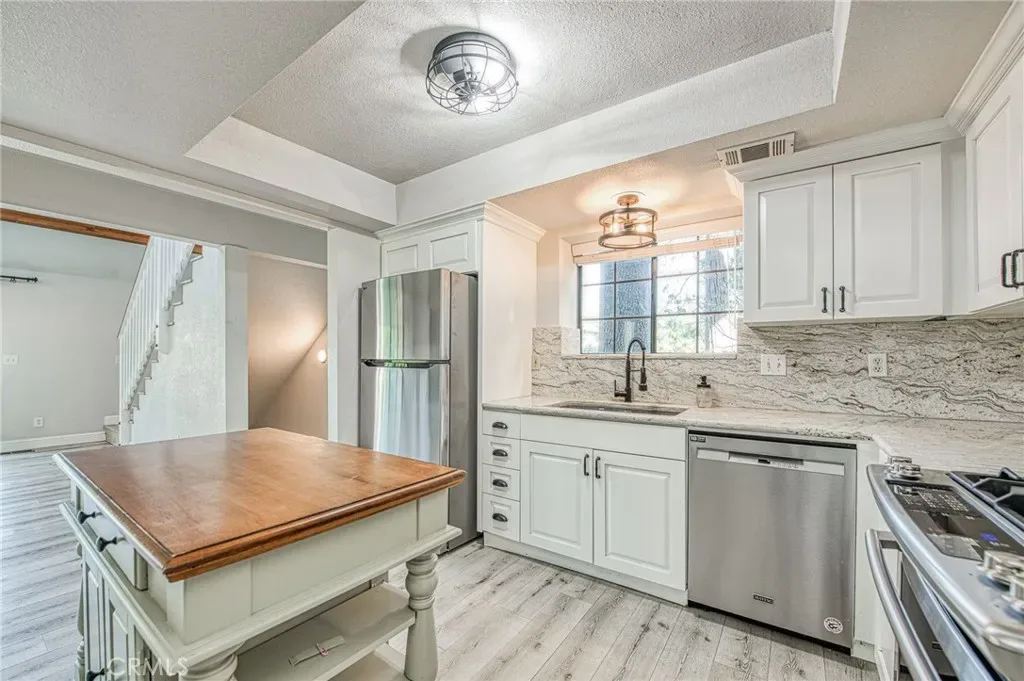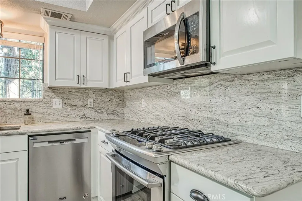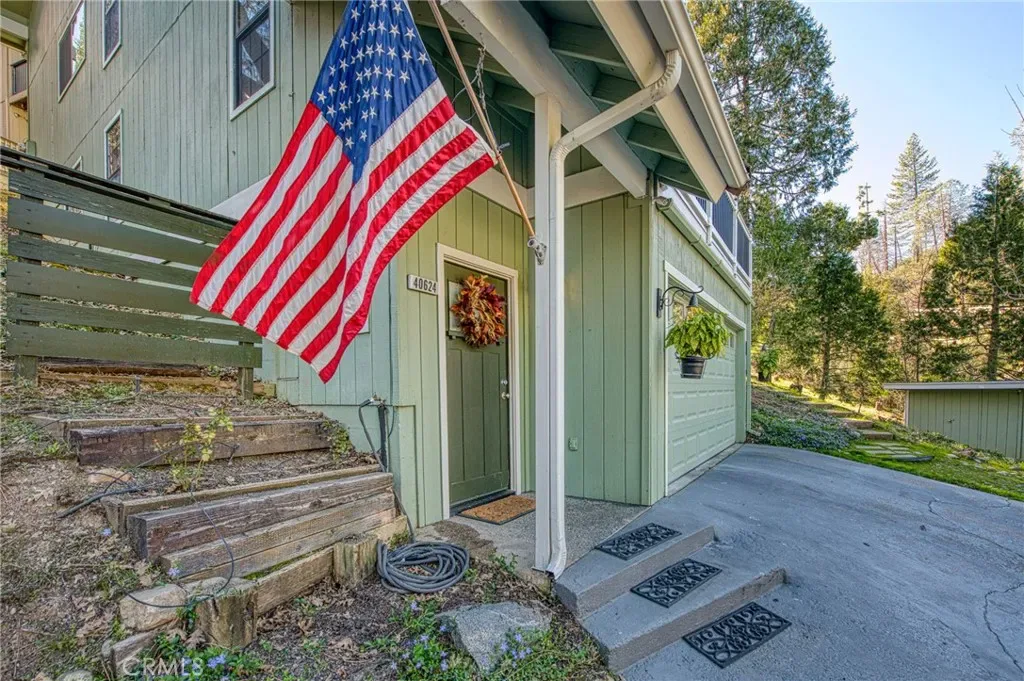 Welcome to a rare mountain retreat, meticulously maintained and nestled against lush forestry for ultimate privacy. This Bass Lake gem in the quaint Ridgeline Development perfectly blends rustic charm with modern luxury, featuring a versatile three-level layout adorned with luxury vinyl flooring and contemporary lighting. The open-concept living area, anchored by a cozy wood-burning fireplace, flows seamlessly into an updated kitchen equipped with granite countertops, ample cabinetry, and premium stainless steel appliances (all included). Designed for effortless living, the main floor provides a private bedroom with a walk-in closet and full bathroom, a spacious laundry room (Washer/Dryer Included), and direct side-yard access, making it ideal for guests or single-level convenience. The second floor serves as a true sanctuary, housing a primary suite with a walk-in closet and a newly remodeled spa-like bathroom, alongside an additional large bedroom with its own walk-in closet and full hallway bath. On the third level, you will find a private fourth bedroom with a walk-in closet and a flexible bonus room, perfect for a home office, gym, or game room. Outdoor enthusiasts will appreciate the open deck, an ideal spot for catching breathtaking sunrises or unwinding during golden sunsets. The property also includes a finished two-car garage with extra storage for a wine cellar or utility closet, central HVAC, and an HOA that conveniently handles snow plowing and trash. Plentiful parking is located on and near the property for all of your family and guests. Perfectly situated just minutes from the Bass Lake Marina, local shops, and restaurants, and only 14 miles from the southern entrance of Yosemite National Park, mountain and lake living at an affordable price is waiting for your next adventure.