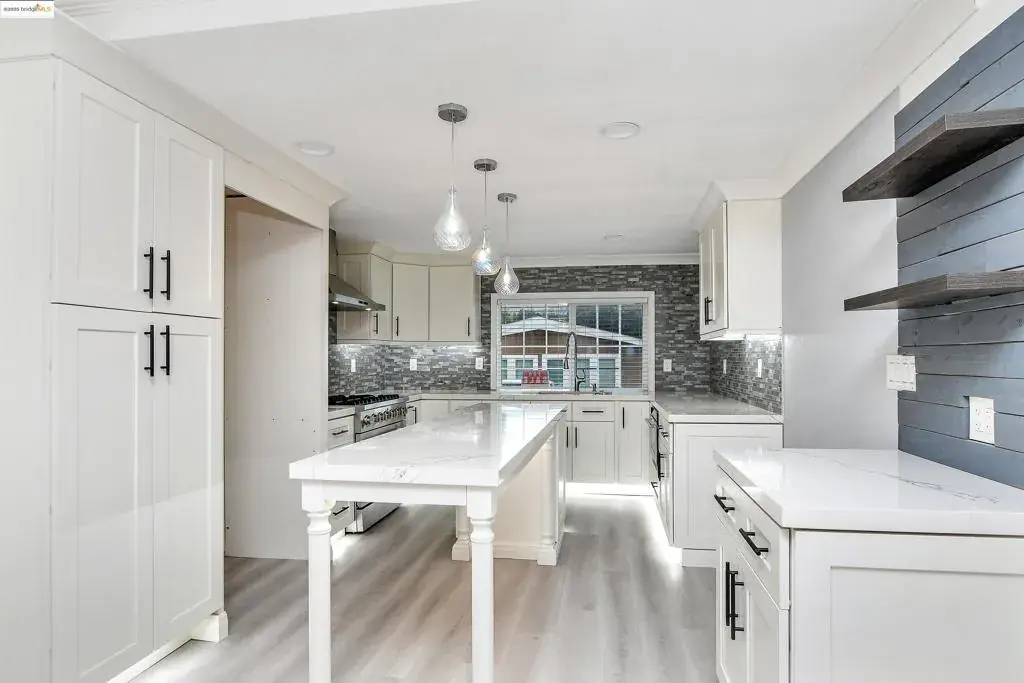 Beautifully Remodeled Modern Home! Step inside this stunning move-in ready manufactured home featuring a bright open floor plan, recessed lighting, and flooring throughout. The sleek, fully renovated kitchen boasts white shaker cabinets, quartz countertops, designer backsplash, pendant lighting, and a professional-grade gas range. Enjoy the inviting living room with a custom-built media wall and modern electric fireplace — perfect for relaxing or entertaining. The updated bathroom offers a spa-inspired feel with subway tile, rainfall shower, matte black fixtures, and a lighted vanity mirror. Spacious bedrooms include custom closet organizers and plenty of natural light. Every inch of this home showcases quality craftsmanship, thoughtful updates, and modern finishes. A stylish blend of comfort and functionality — move right in and enjoy contemporary living at its best! This beautifully remodeled home is even better in person! Fireplaces: ELC,FAM