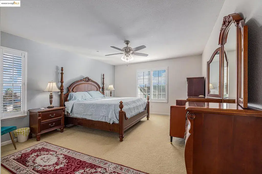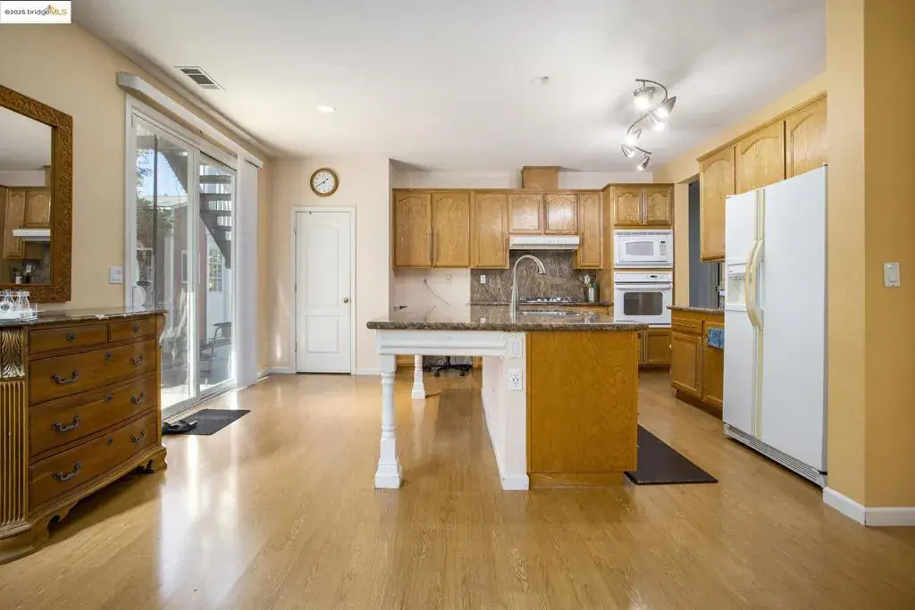 Welcome to 1126 Oakpoint Drive in Bay Point — a truly stunning home that blends comfort, style, and flexibility! This beautiful 5-bedroom, 3-bath residence offers over 3,200 sq. ft. of living space, ideal for large or multigenerational households. The main level includes a full bedroom and bath — perfect for guests, extended family, or a private office. Enjoy an open-concept floor plan with soaring ceilings, abundant natural light, and a gourmet kitchen featuring granite countertops, ample cabinetry, pantry, and island. The dining room opens to the side yard through elegant French doors, while the family room offers a cozy fireplace and Wilson Art flooring. Upstairs, four spacious bedrooms and a full bath complement the massive primary suite, which has been converted into a private flat with separate entrance, full kitchen, and appliances — ideal for in-laws or rental use. The quarter-acre lot is a true outdoor oasis, complete with a spa, mature trees, pavers, and stamped concrete, plus no rear neighbors for added privacy. A private driveway and converted three-car garage—now a stylish man cave with epoxy floors—add to the appeal. Lovingly maintained by the original owner, this home is conveniently located near the Bay Point BART station, CA-4, shopping, and local schools.