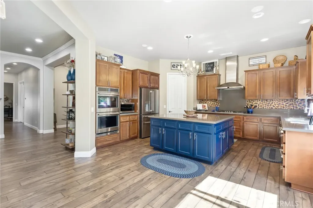 The kitchen is a standout, complete with an island, abundant cabinetry, stainless steel appliances, and new kitchen appliances