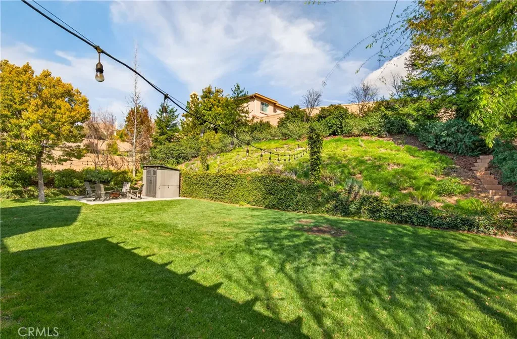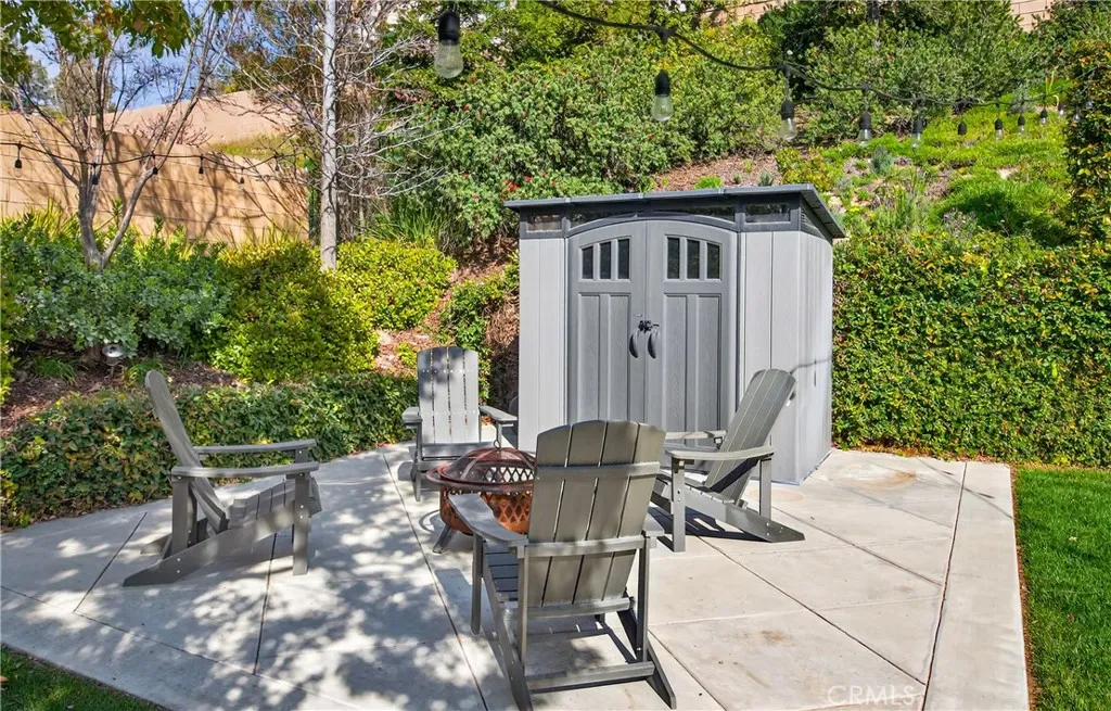 Step outside to your private backyard retreat featuring a covered patio, mature trees, and ambient lighting—perfect for relaxing or entertaining.