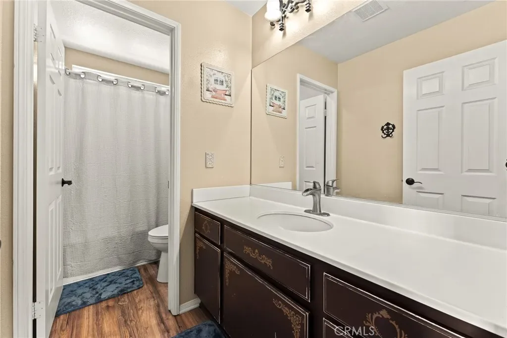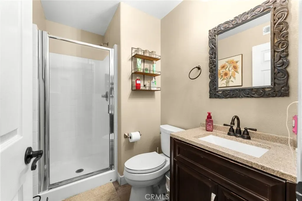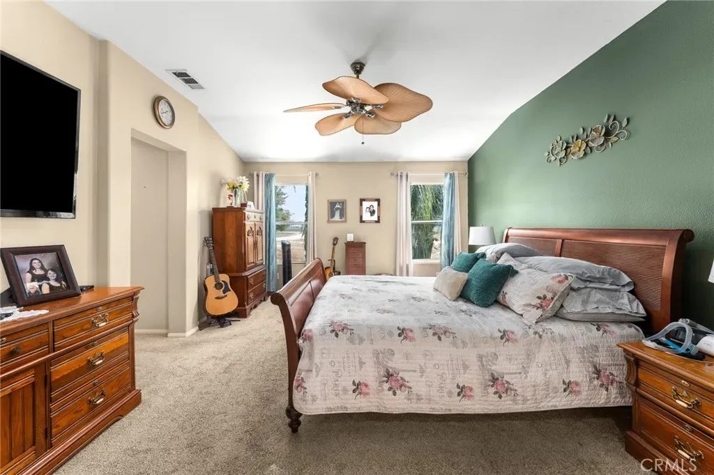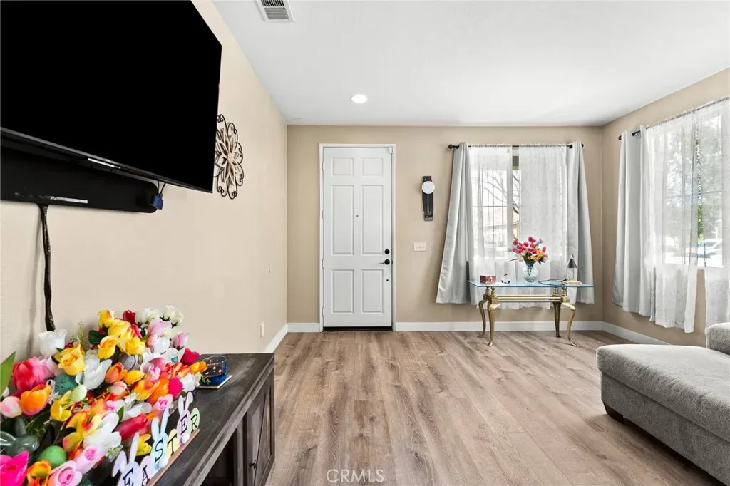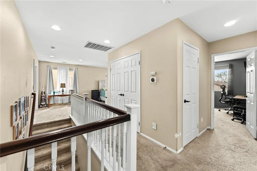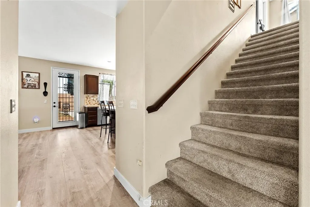 Located in a family friendly Beaumont neighborhood surrounded by scenic mountain views, this well-maintained 5-bedroom, 3-bath home offers over 2,300 sq ft of functional living space. Turnkey and move-in ready, this home offers a spacious layout ideal for everyday living and entertaining. As you enter the home, you’re welcomed into the living room filled with abundance of natural light, and upgraded LVP flooring throughout, with carpet in select areas for added comfort. The kitchen opens to the dining area and features a large kitchen island, tiled countertops, and a stylish backsplash, along with recessed lighting. The dining area is highlighted by a cozy fireplace, creating a warm space for gatherings. A downstairs bedroom and full bath provide flexibility for guests or multi-generational living! Upstairs offers a spacious loft that can be used as a second living area, office, or game room. All bedrooms are generously sized, including the primary suite, which features French doors, a private bathroom with dual sinks, and a separate toilet area. Step outside to a spacious backyard with a large concrete pad, built-in brick fire pit, hardscape, and a combination of block wall and vinyl fencing. There are mature palm trees and low-maintenance landscaping creating a private, relaxed setting with room to entertain or customize. The backyard backs directly to San Gorgonio Middle School, offering added convenience and no rear neighbors. Conveniently located near local schools, parks, shopping, and with easy access to the freeway. No HOA and no solar, offering added flexibility and lower monthly costs. Schedule your private showing today.