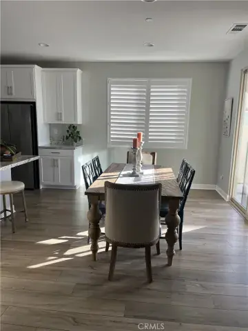 This home is located in Altis for residents aged 55 or older. The home features numerous upgrades including waterproof wood-look flooring, shutters, and a chef’s kitchen featuring a farmhouse sink. There is white cabinetry throughout the home with brass hardware. The house has been professionally painted in neutral tones. Situated on a premium corner lot, the property provides views from both the front and back, with no home behind it, just the HOA maintained trail. The front and backyard was professionally landscaped for low maintenance. The community has a resort like feel with a clubhouse, pools, spa, fitness gym, and pickleball courts to name a few. The home is equipped with smart technology and keyless entry. Welcome to Beaumont!